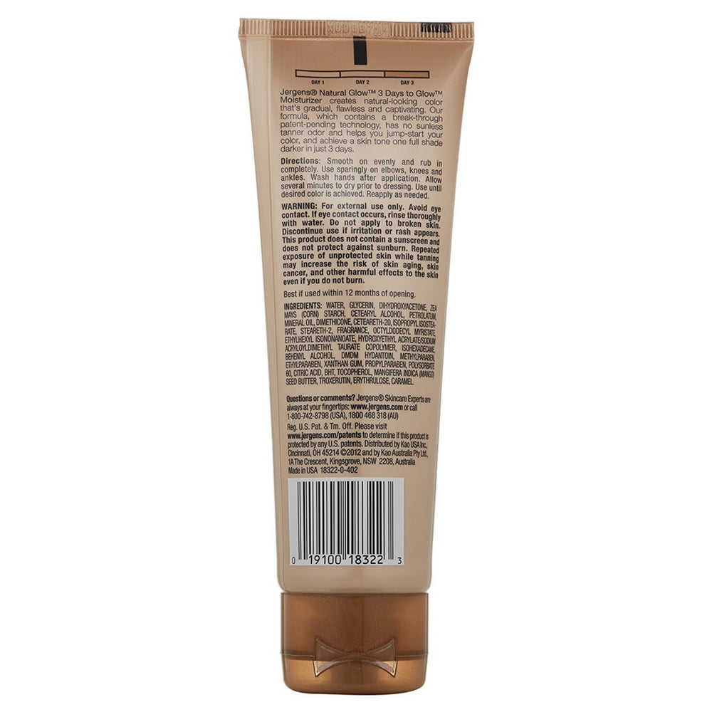 Jergens Natural Glow 3 Days to Glow Moisturizer, Medium to Tan 4 oz