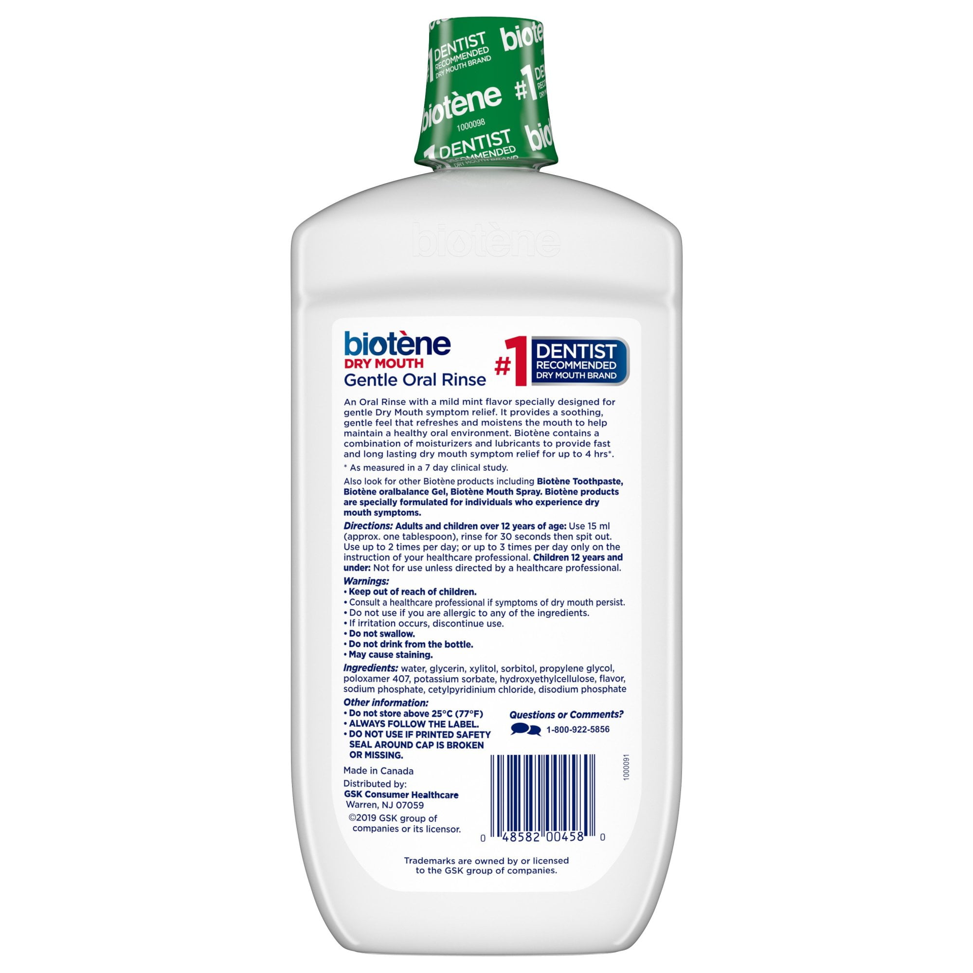 Biotene Alcohol-Free Moisturizing Gentle Oral Rinse for Dry Mouth, Mild Mint, 33.8 Oz