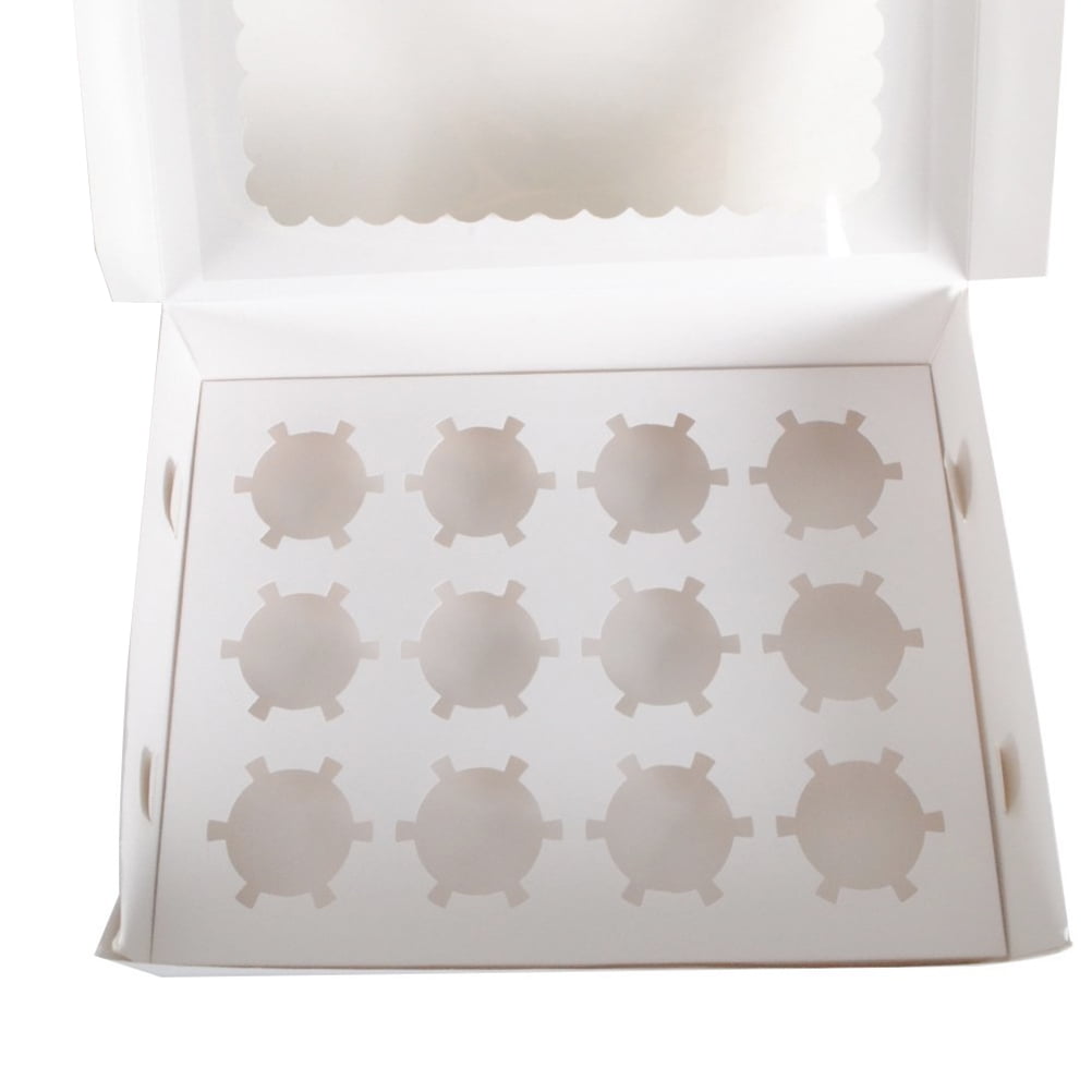 5pcs Portable 12-Cavity Cupcake Box Container Muffin Window Box (White)