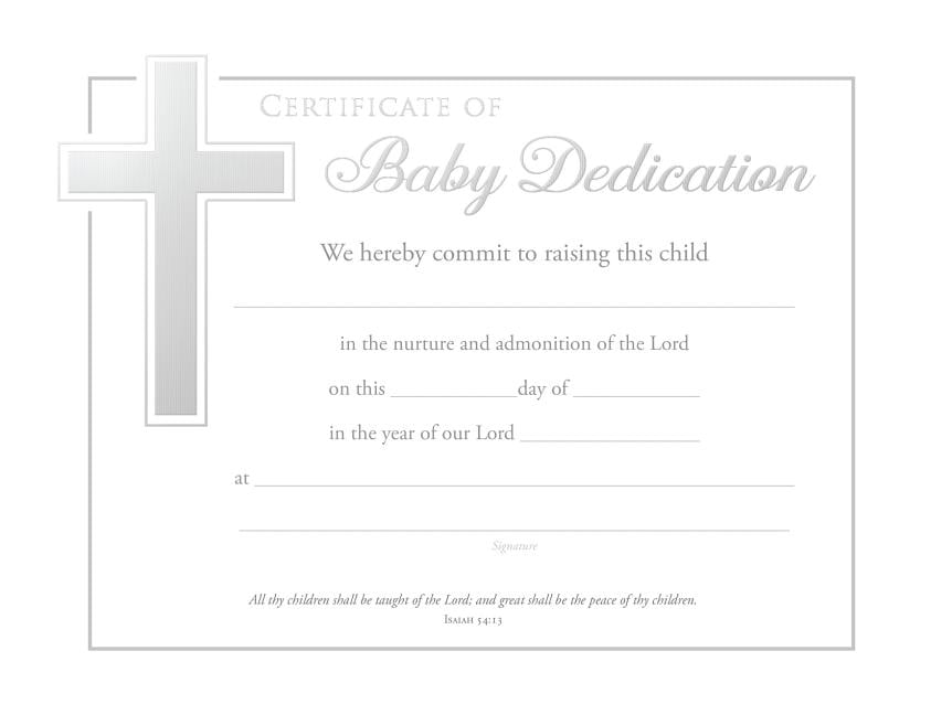 Pack of 6 certificates and envelopes. Size: 8 1/2 x 11. Premium paper quality, Silver Foil embossed.Baby Dedication Certificate (Other)