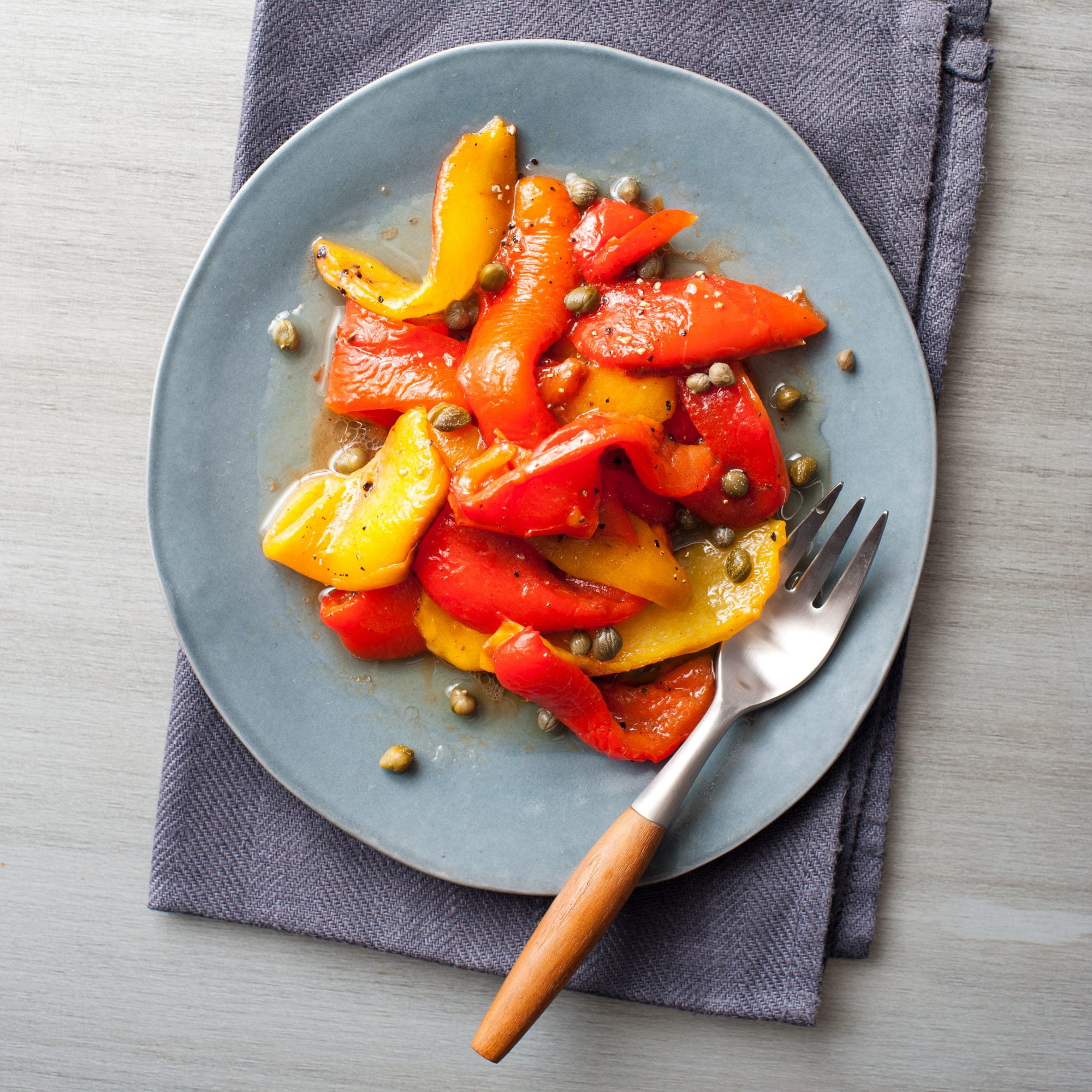 Roasting intensifies the flavors of vegetables, and red peppers are no exception. You can roast these peppers in the oven or on the grill. However you roast them, just make sure they are cooked until softened but not too charred. You can prepare these peppers through step 2 up to 1 day ahead; cover and chill. Let come to room temperature before serving and drain off excess liquid. Be sure to use very fresh garlic; old garlic will taste bitter and strong.