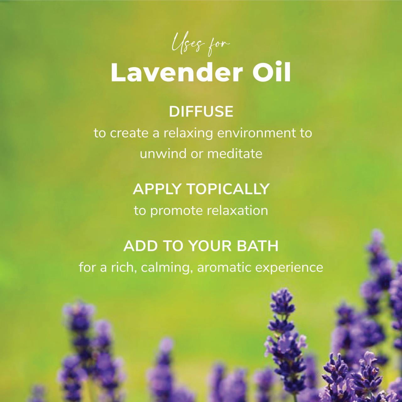 Lavandula angustifolia100% pure essential oil Aroma: floral, sweet, herbaceous, clean Note: Middle Extraction: Steam Distilled Origin: Bulgaria DescriptionLavender is calming, soothing, and uplifting, and well known for it’s ability to relieve stress and anxiety. It’s elevating qualities have been said to help those suffering from depression. Lavender has a lovely fragrance that is often used for many applications, from beauty products to household cleaners. The wide range of uses, make Lavender a great place to start for a novice, just entering the world of essential oils, yet is still a popular go-to oil for the experienced. This delightfully aromatic essential oil is an antiseptic said to be excellent when applied topically for soothing skincare, small cuts, and insect bites, and is a popular choice for a relaxing bath. Lavender is a great meditation aid, can help one to relax and to take a break, or purely to create a peaceful environment. Can reduce anxiety & stress, Eases bug bites & stings Canker Sores: Speeds the healing and recovery process. Cognitive Function: Memory, focus, research encouraging for Alzheimer’s and dementia. Healing Qualities: For minor cuts, burns, insect bites, bruises, sunburns, and scrapes.Insomnia: Diffuse or apply to the back, stomach, or neck, or pillow to increase quality and duration of sleep. Relaxing: Use topically or diffuse to relax, unwind, and feel relief from tension. Skin: Beautifying and soothing for dry, itchy skin.Lavender Essential Oil 10ml