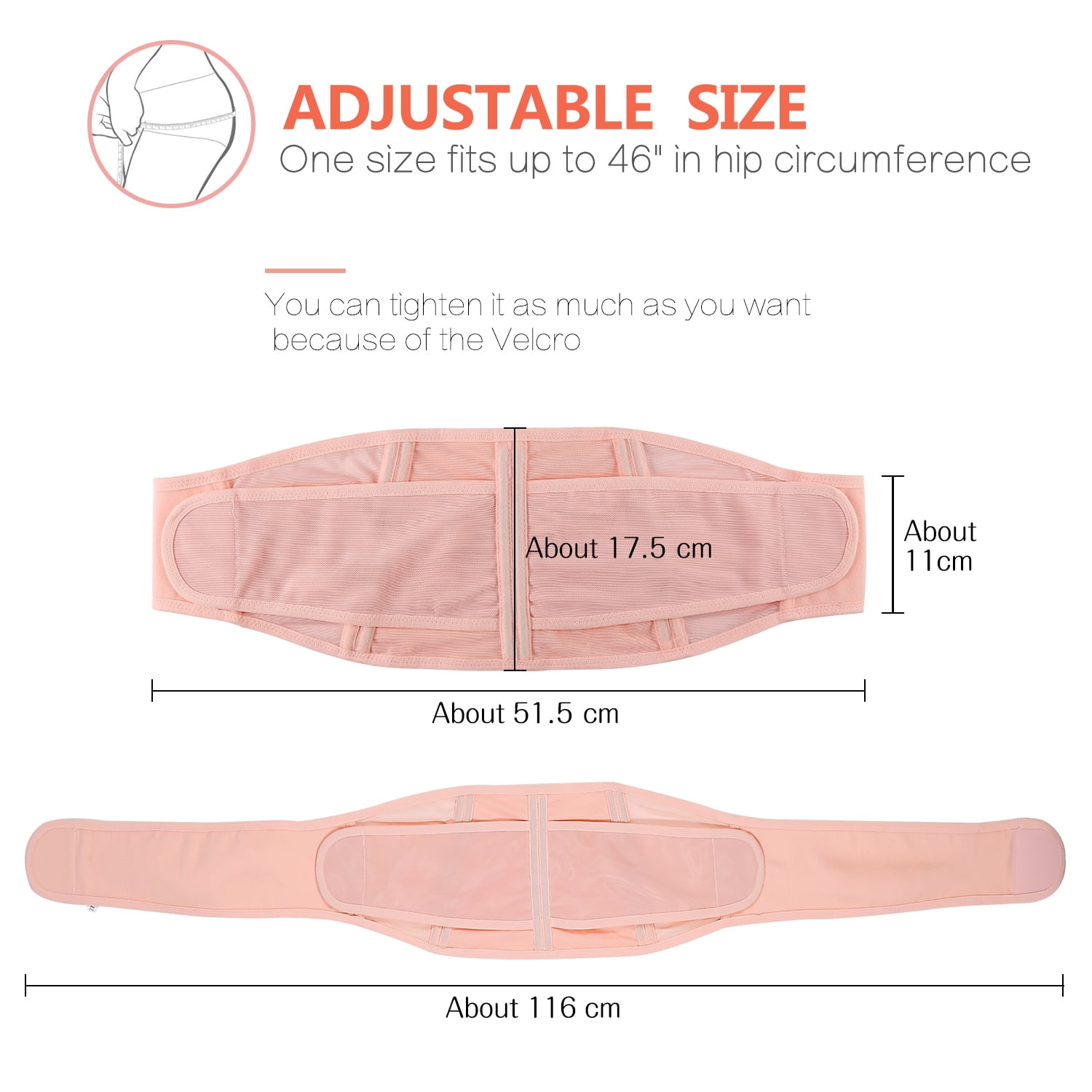 ??? ADJUSTABLE SIZE: One size fits up to 46" in hip circumference. Fully adjustable to accommodate your abdominal growth throughout pregnancy. You can tighten it until you feel comfortable. (DON’T apply too tightly or it will restrict blood circulation)