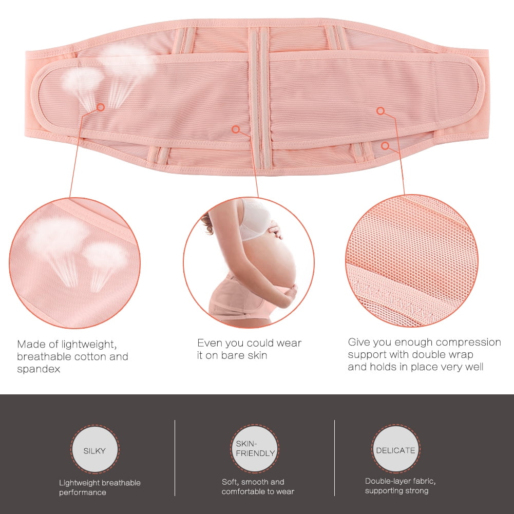 ??? COMFORT MATERIAL: Our Pregnancy Support Belt is made of lightweight, breathable cotton and good quality spandex. Even you could wear it on bare skin. Fits for everyday use and it’s unnoticeable under clothes while still providing you the best support for you.