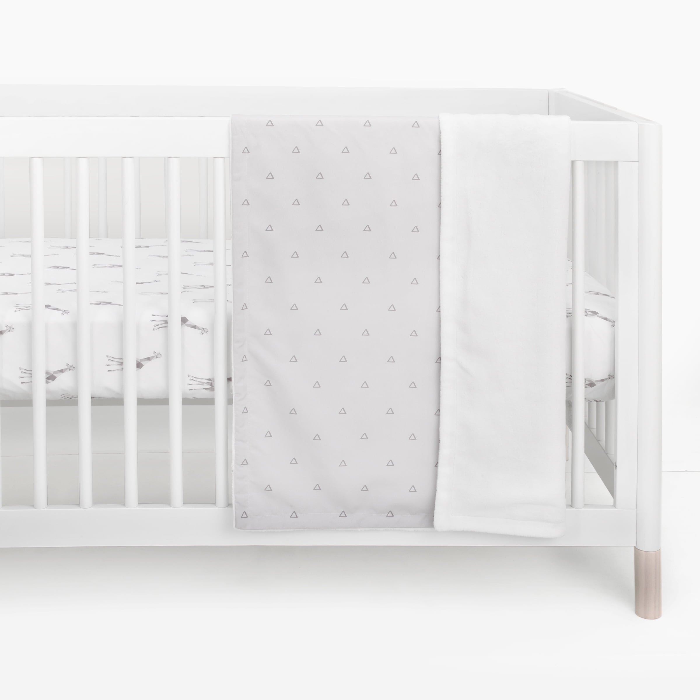 Your little one will experience extreme coziness with this MoDRN Giraffe Baby Blanket. The cuddly blanket features a soft microfiber front in light grey with a charcoal grey geometric triangle all-over print, while the back is a plush velboa fabric in shades of grey and white. This sweet baby blanket measures 30 inches by 40 inches and is the perfect size for cuddling. Exceptionally giftable, this super soft and cozy baby blanket is the perfect gift for baby showers. This blanket will be the one you reach for to cuddle your newborn and will be your toddler’s favorite to curl up with for a nap. This cuddly, cozy baby blanket coordinates with other MoDRN baby bedding sets, for a cohesive look in your baby’s nursery. Snuggle your little one in comfort and coziness with the MoDRN Giraffe Baby Blanket.