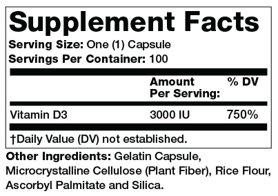 Vitamin D3 is an essential vitamin that the body needs for healthy bones, teeth, and muscle function. It supports a healthy immune system and has been linked with lower levels of depression. Aptly named the ?sunshine vitamin,? D3 is naturally synthesized when bare skin is exposed to UVB sunlight. But the indoor modern lifestyle does not allow most of us to get as much as we need, and the Mayo Clinic estimates that 25%-50% of the general population may be vitamin D deficient.*