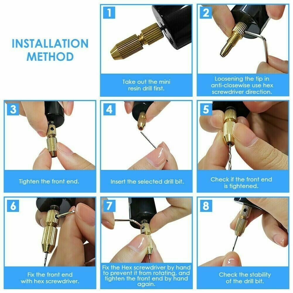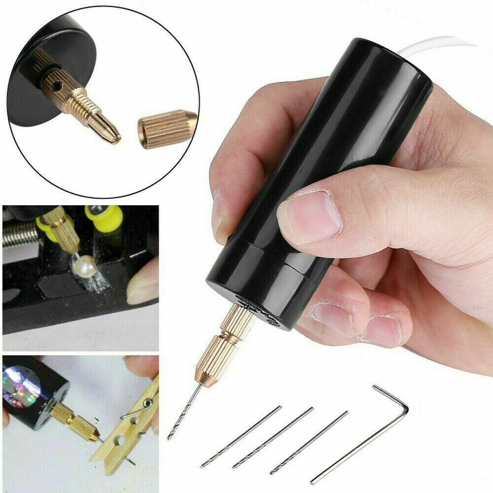 - Easy to Use: USB data cable power supply, easy to use. There is a switch on the USB cable for easy control. Just unscrew the card halfway, insert the drill bit you need, and tighten the head to complete the installation. Turn on the power and turn on the switch to drill holes.