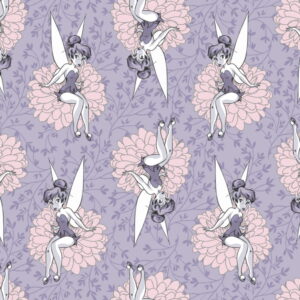 Disney Tinkerbell Sitting on a Flower in Purple Fabric by The Yard