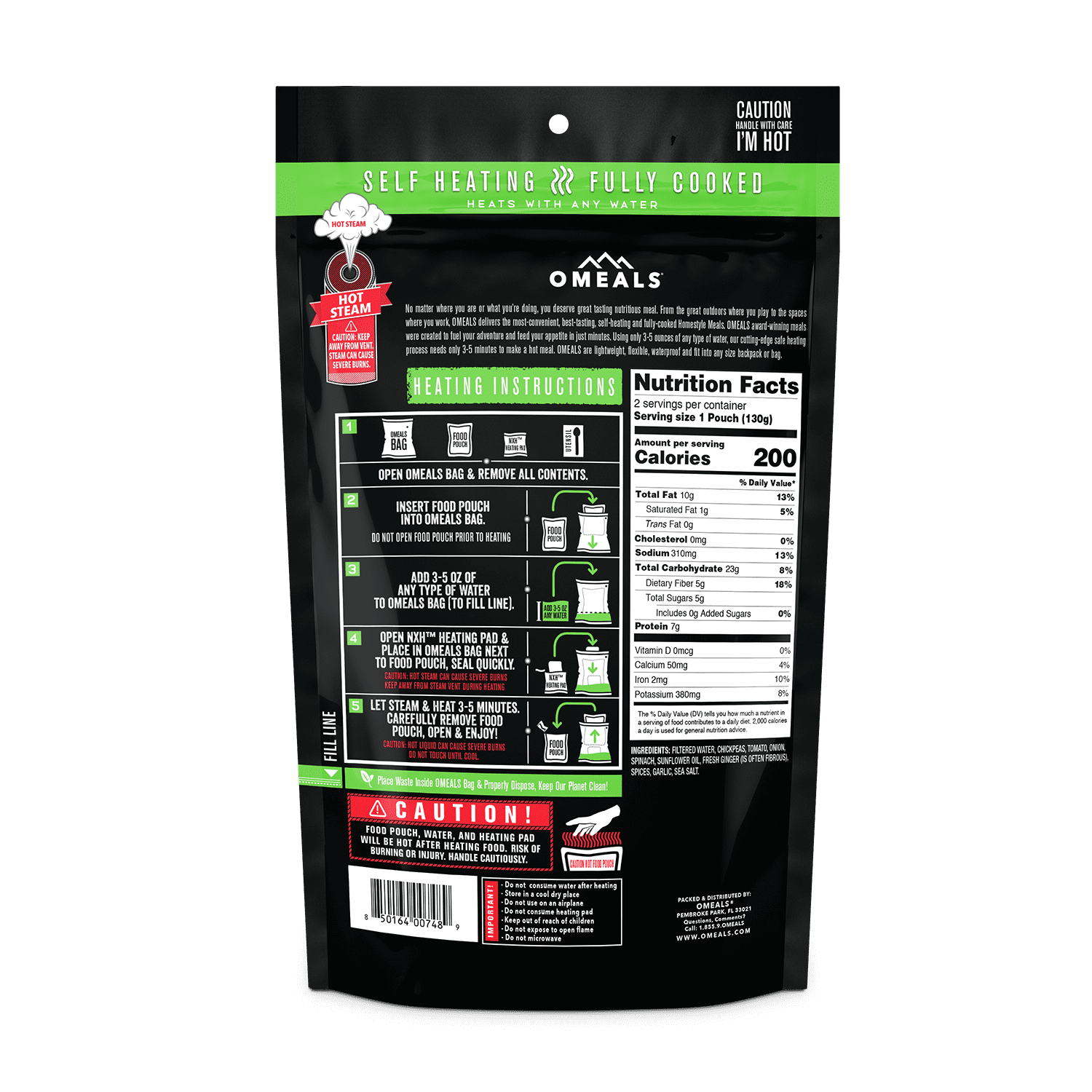 Omeals Chickpea Masala 9oz. Pouch Self Heating Camping Meal