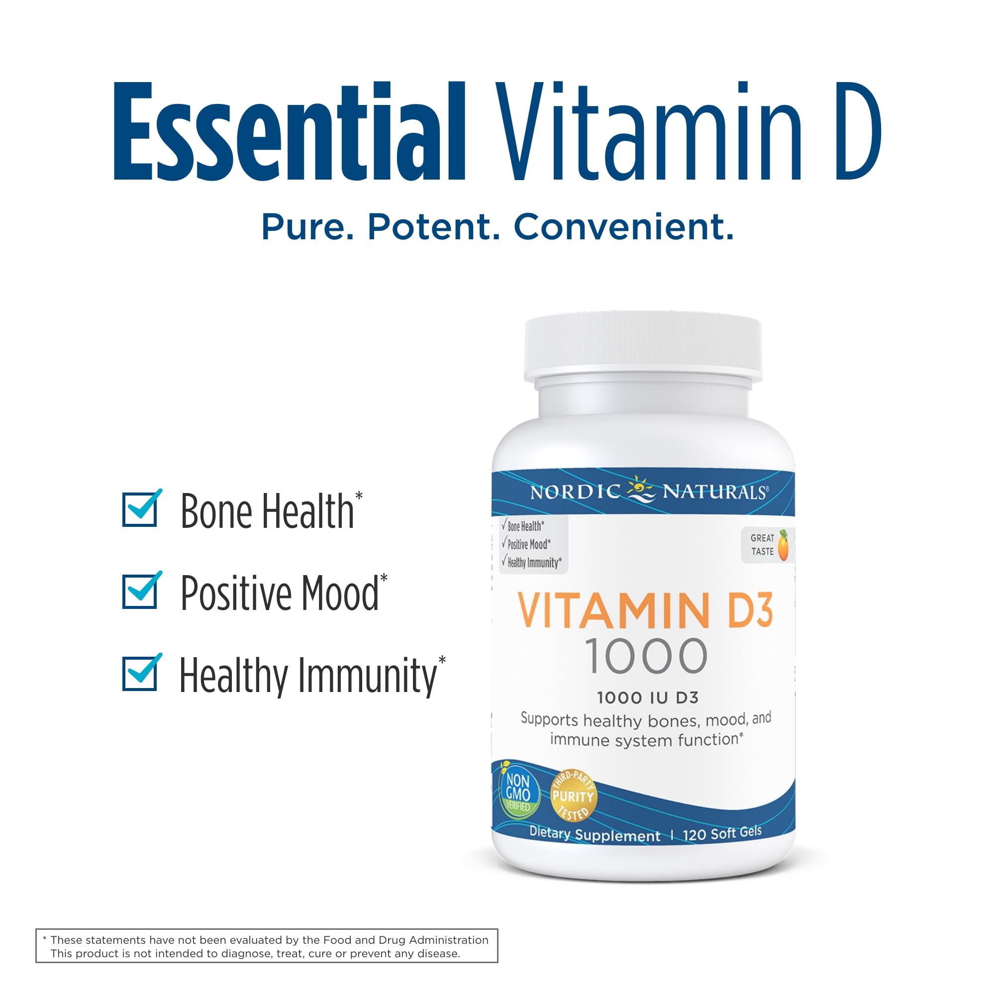 Nordic Naturals Vitamin D3 Softgels, 1000 IU, Supports Healthy Bones 120 Ct