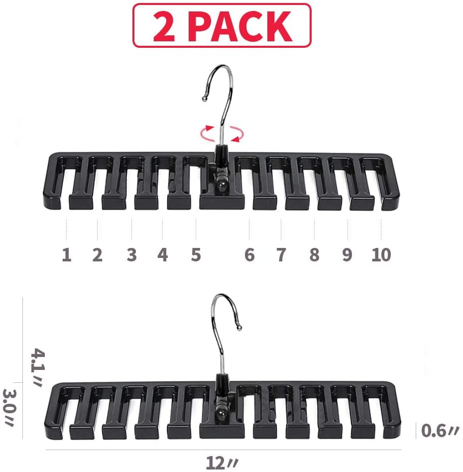 VONTER 2 PCS Belts Rack, 360° Swivel Hook for Belts Ties Scarves Storage Organizer, Hanger, Holder – Closet Racks Hangers Sturdy for Men & Women(Black)