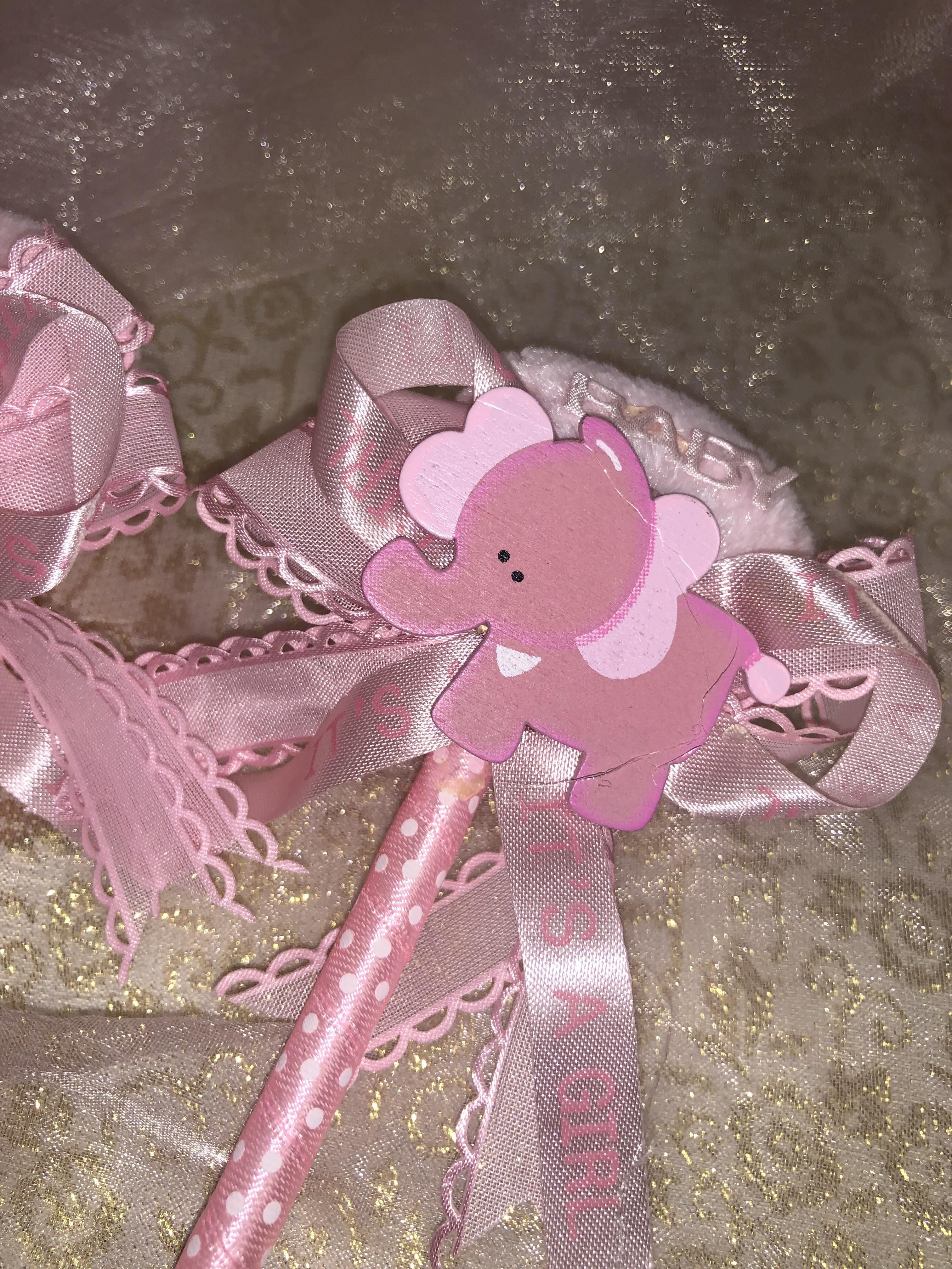 Charmed Baby Shower Elephant PomPom Pens Favors Pink It’s a Girl Born to Be Wild 12 pieces