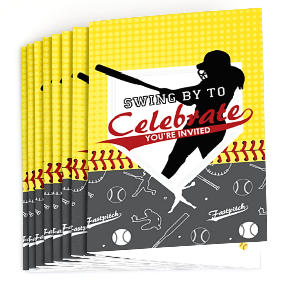 Grand Slam – Fastpitch Softball – Fill In Birthday Party or Baby Shower Invitations (8 count)