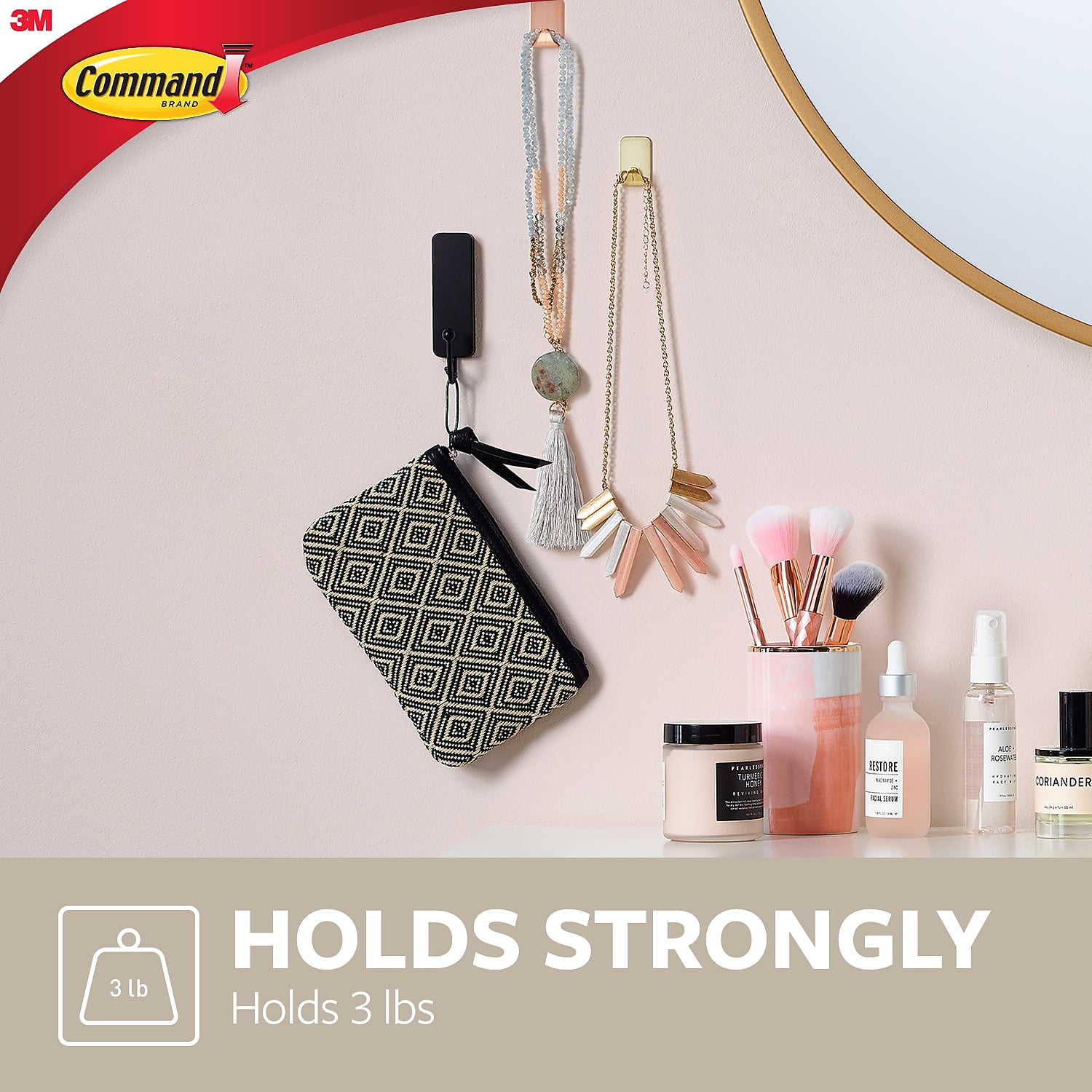 Command™ Damage-Free Hanging, Holds Strongly, Removes Cleanly.Command™ Decorative Hooks come in a variety of styles, from sophisticated to fun and playful, giving you options for every room and every person in your home. INCLUDES – 2 matte black hooks, 4 medium strips, 1 hook holds 3 lbs. ORGANIZE DAMAGE-FREE- Say goodbye to holes, marks, or sticky residue on your walls, doors, cabinets, or closets; Command Hooks by 3M are easy to use and help keep your walls looking beautiful. NO TOOLS REQUIRED- Hang hats, bags, dog leashes, scarves, and accessories where you want without nails or a hammer. STRONG AND VERSATILE- Command Hooks hold strongly on a variety of indoor surfaces including painted walls, finished wood, glass, tile, metal, and other smooth surfaces. REMOVES CLEANLY- Redecorate when inspiration strikes; These wall hooks leave no sticky adhsve behind; Perfect to use in your college dorm, apartment, home, and office.Using the revolutionary Command™ adhsve, Command™ Decorative Hooks hold strongly on a variety of surfaces, including pnt, wood, tile and more. Yet, they also come off cleanly no holes, marks, sticky residue or stains so you can take down and move your Command™ hooks as often as you like. Reusing them is as easy as applying a Command™ Refill Strip, so you can take down, move and reuse them again and again!. Sold as 2/Pack.Command Medium Designer Hooks Matte Black 2 17034MB2ES