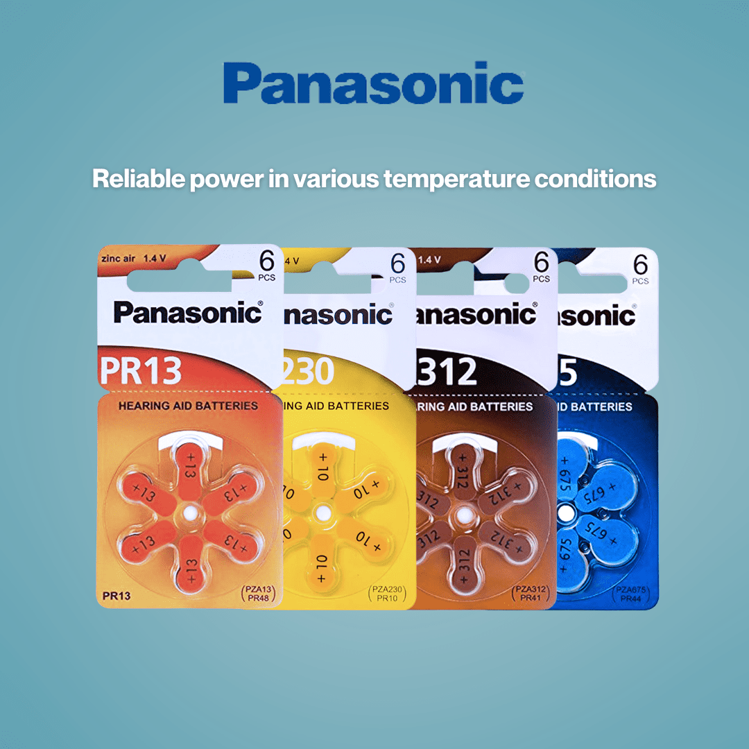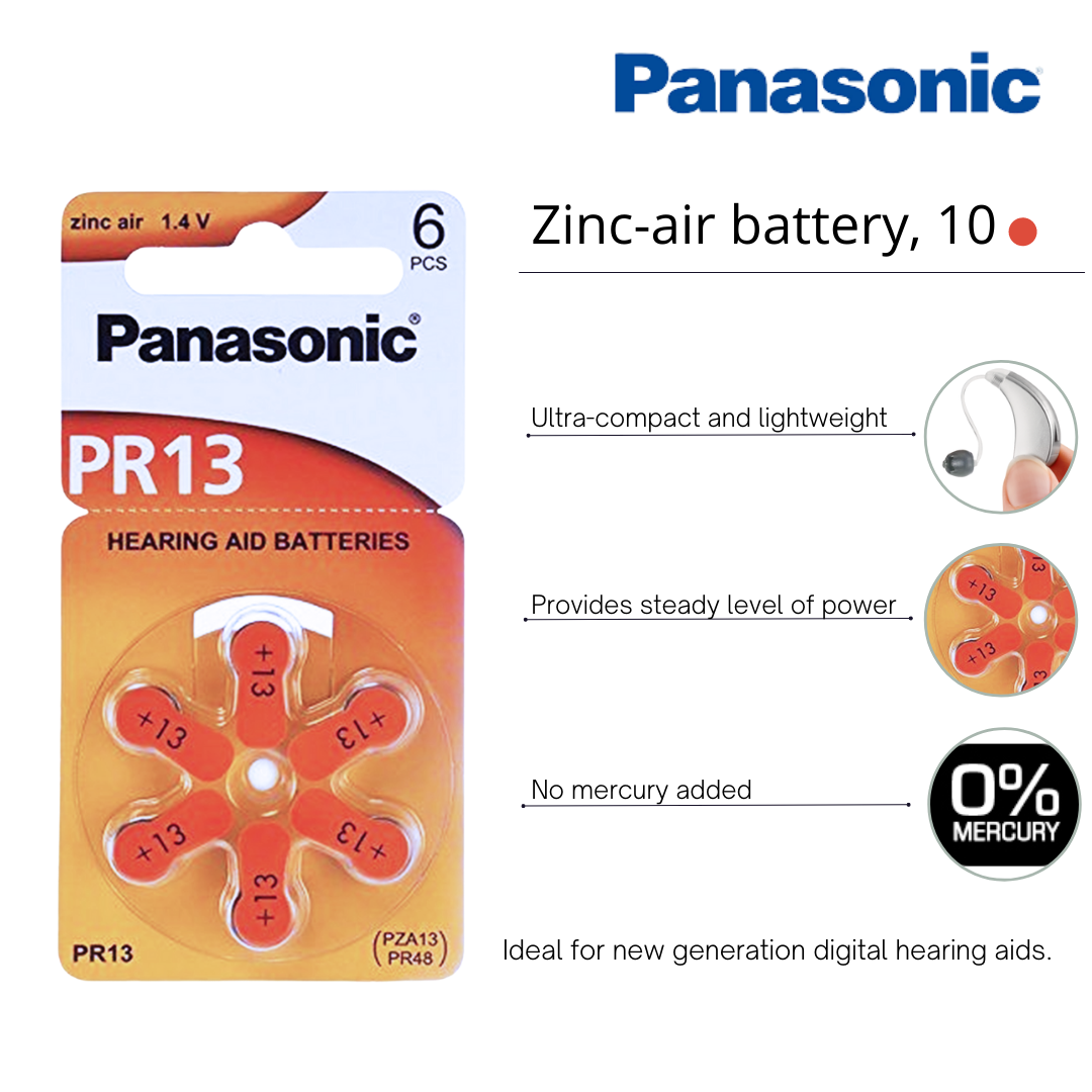 Batteries for hearing aid, Panasonic’s hearing aid batteries are ideal for new generation digital hearing aids. Panasonic’s ZINC AIR hearing aid batteries have been developed with the consumer’s needs in mind.