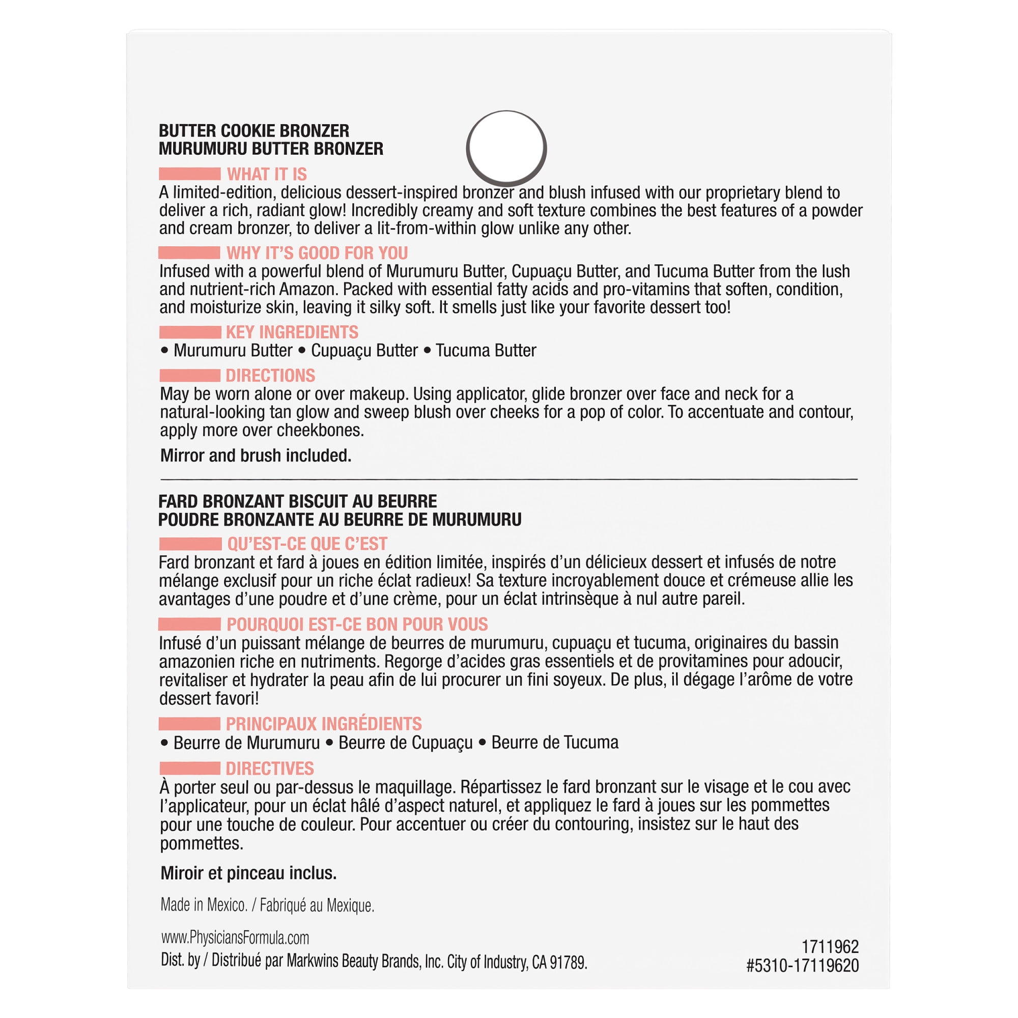 - Even your healthy makeup routine deserves a cheat day now and then, and Physicians Formula is here to help you indulge in the sweet side of beauty. Enjoy a day at the cafe with this collection of deliciously scented bronzers blended with a rejuvenating blend of Murumuru Butter, Tucuma Butter, and Capuacu Butter that work together to restore, moisturize, and protect your skin. With binge-worthy scents like cake, coffee, cookies, and donuts, these ultra-creamy bronzers indulge your senses while giving you that gorgeous glow-from-within look you’ve been craving. Lusciously creamy and formulated especially for sensitive skin, this bronzer applies smoothly while serving as the perfect base for a number of artistic and natural looks.