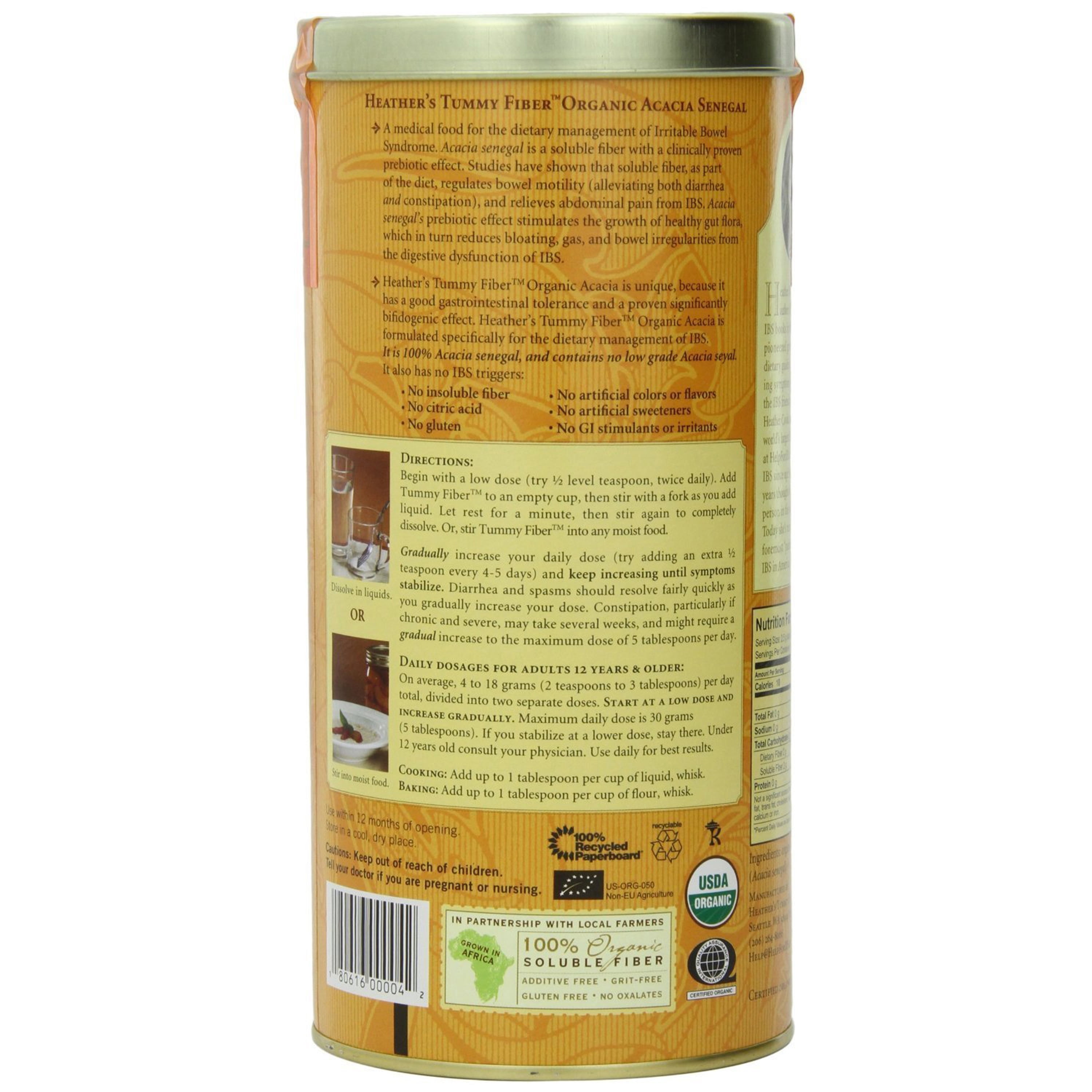 Heather’s Tummy Fiber CAN Organic Acacia Senegal Prebiotic (16 oz) for IBS