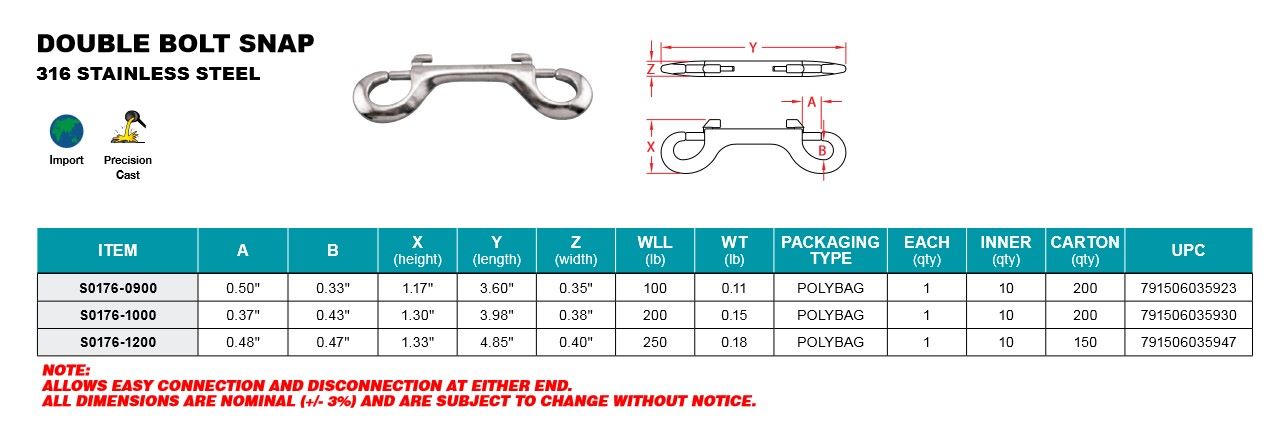 316 STAINLESS STEEL DOUBLE BOLT SNAP 4′ (S0176-1000)