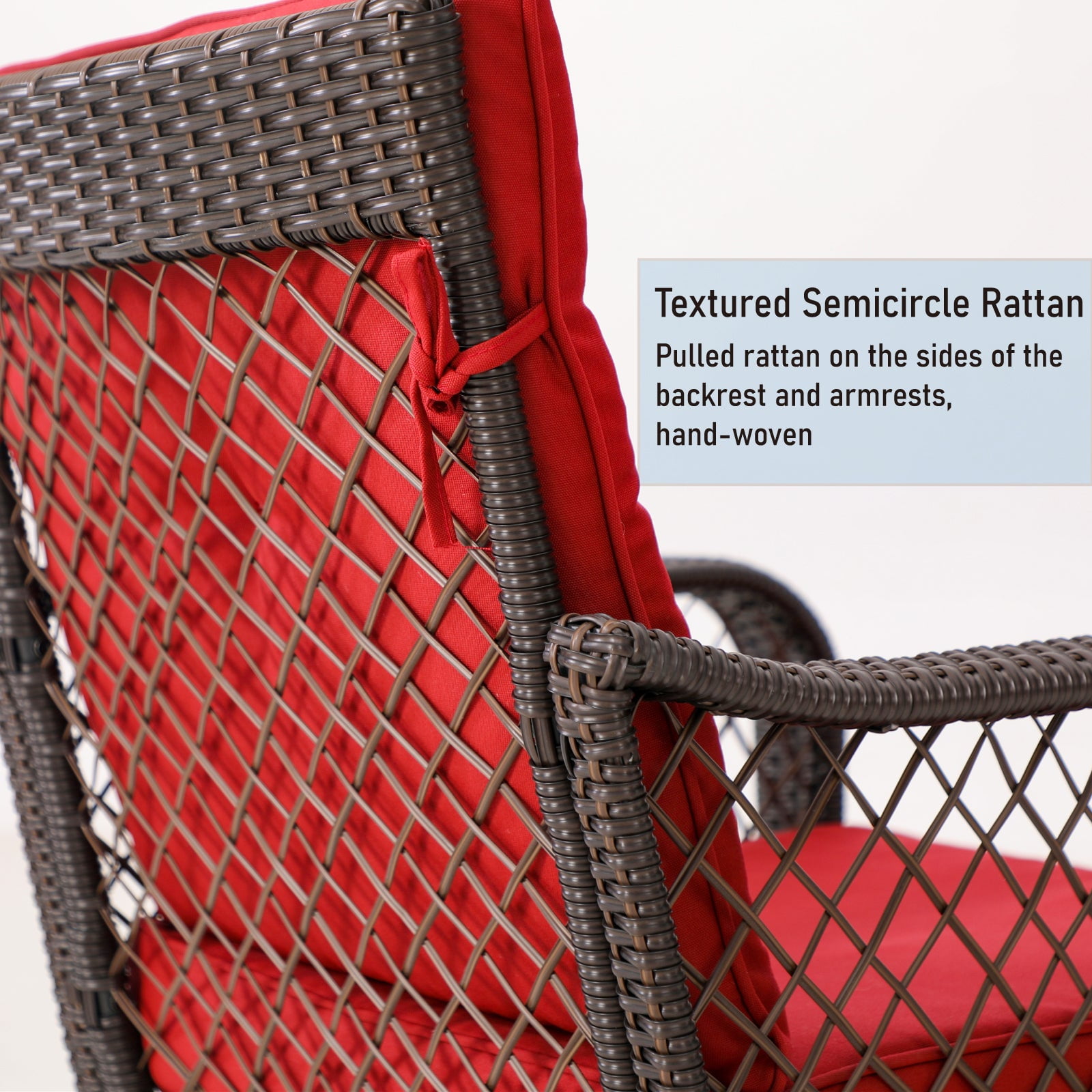 Sophia & William 4 Pieces Patio Conversation Set Rattan Outdoor Furniture Set, Red
