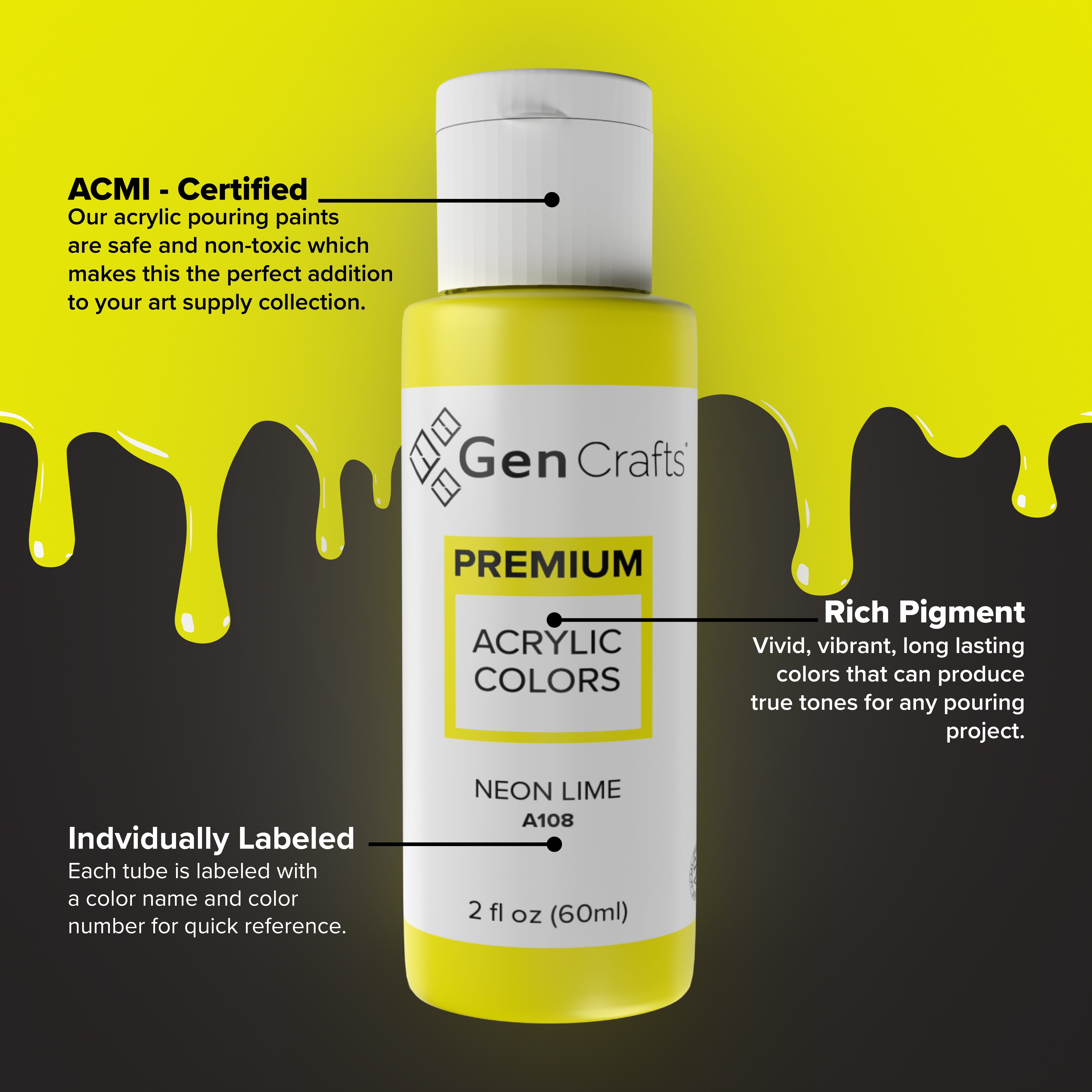 GenCrafts Neon Acrylic Pouring Paint, 60ml Bottles, set of 12