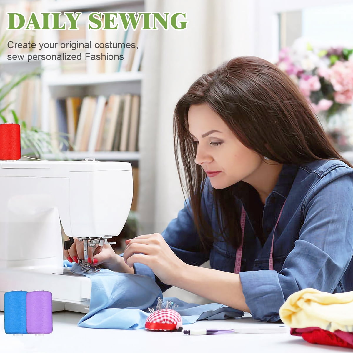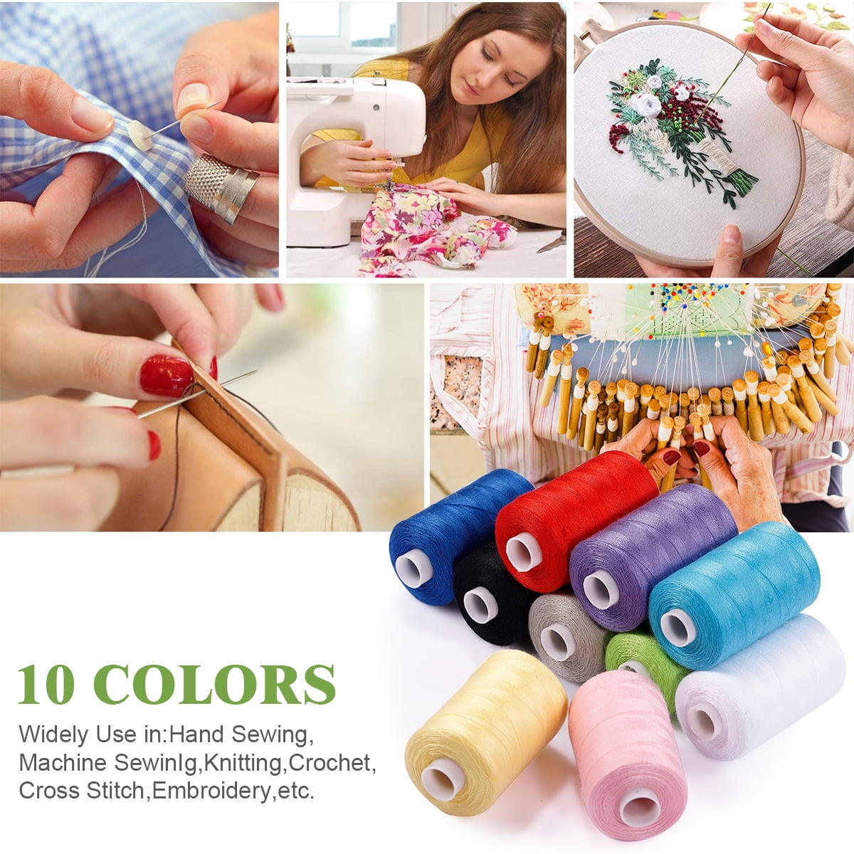 Suitable for hand sewing, machine sewing, embroidery, and weaving.10 Pack Sewing Threads Kits, 1000 Yards Per Polyester Thread Spools with Prewound Bobbins, 10 Colors, for Hand & Machine Sewing