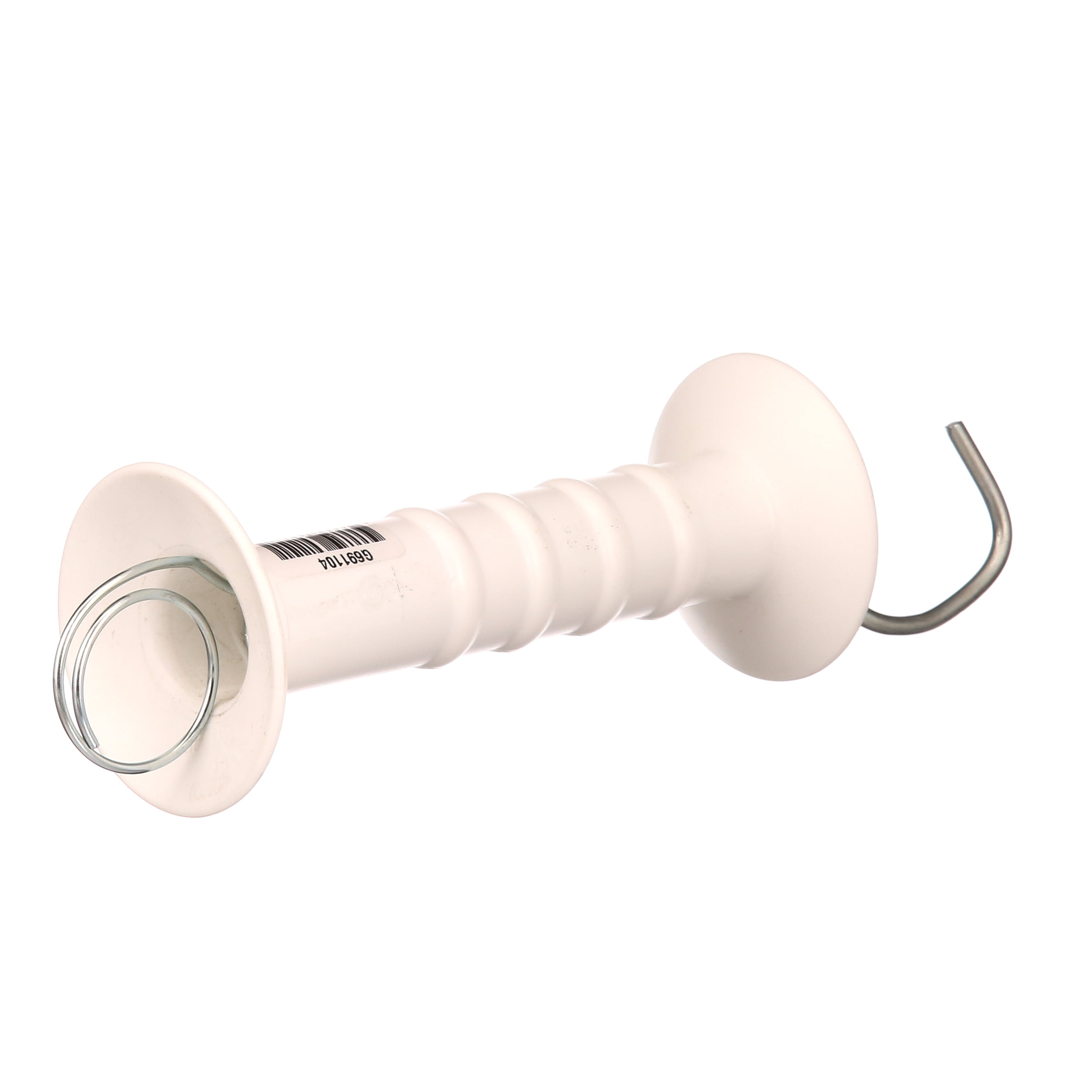 – SKU: TRVAL12650White, Insulated Gate Handle, Large Protective Shields, Galvanized, Non-Turning Hook Secured To Handle, Heavy Duty Tension Spring.