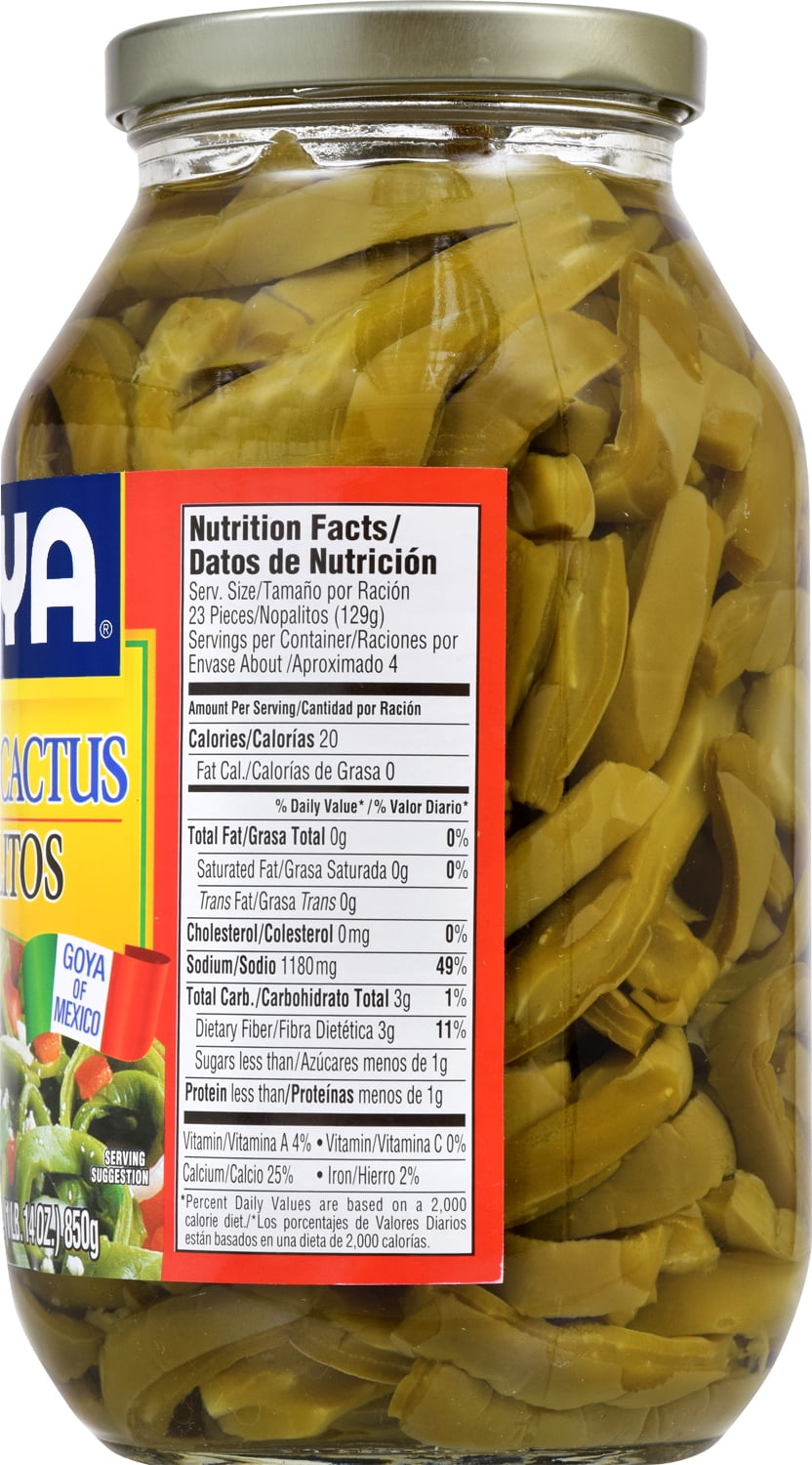 GOYA Tender Cactus 30 Oz. Tender, young paddles from the Nopal cactus, whose thorns are carefully removed, edges trimmed and washed, then sliced into strips or squares and cooked until tender. Gives your salads a unique and special flavor. Add Goya Nopalitos to your favorite salad or to scrambled eggs for a classic dish. www.goya.com.