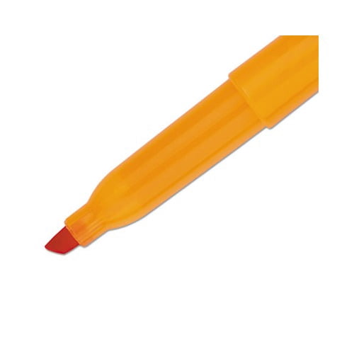 Features SMEAR GUARD ink specially formulated to not smear when highlighting over many pen and marker inks including inkjet printouts, written notes, newspapers and more. Versatile chisel tip is great for highlighting or underlining. Quick drying, odorless ink won’t fade type or bleed through most paper. Colors: Fluorescent Orange Color Family: Orange Tip Type: Chisel Retractable: No.
