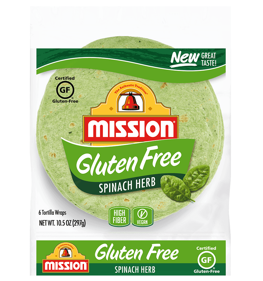 Mission Gluten Free Spinach Herb 8′ Tortilla Wraps, Trans Fat Free, High Fiber, 10.5 oz. 6 Count – 2 Pack