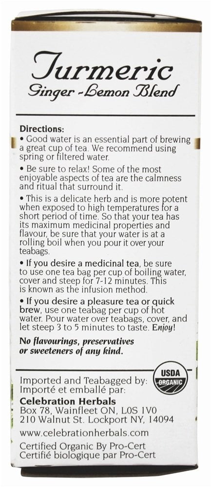 Celebration Herbals Organic Turmeric Tea Ginger Lemon 24 Tea Bags