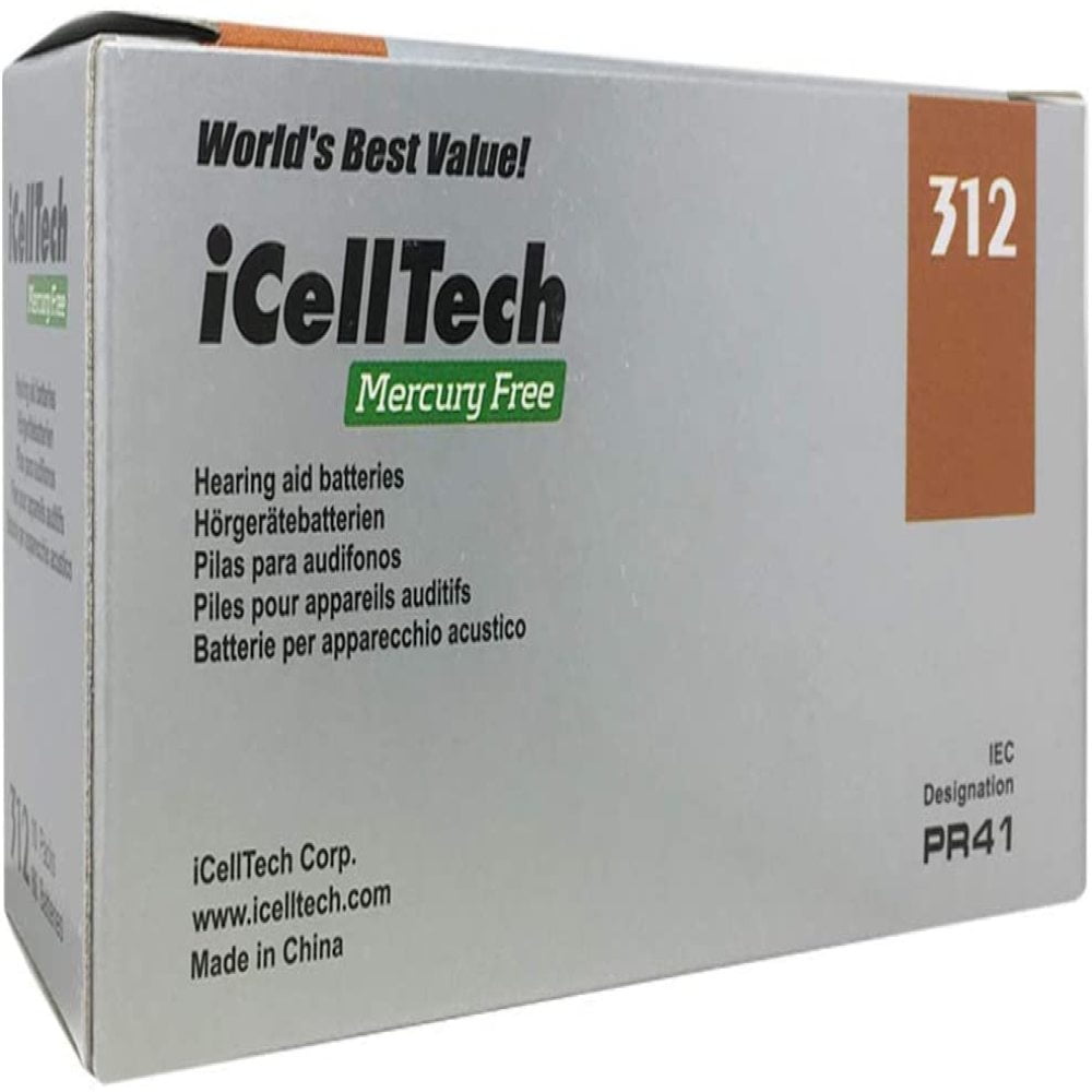 iCellTech Mercury Free Hearing Aid Batteries Size 312 (60 Batteries) + Battery Holder Keychain