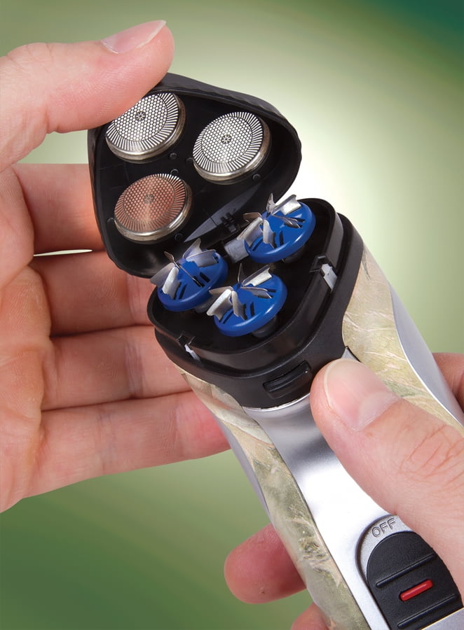 Rechargeable Electric Shaver Camouflage Pattern With 3 Pivoting Head And Pop Up Trimmer