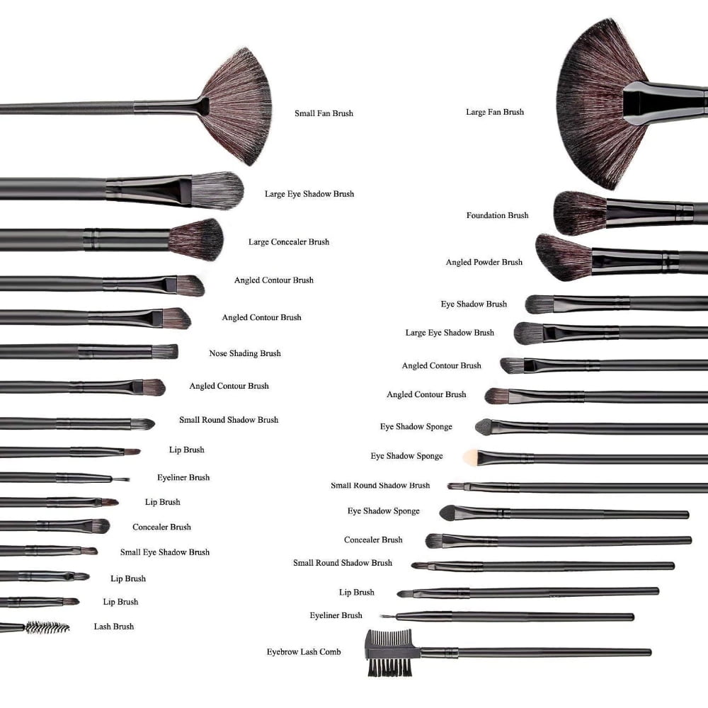 32-Piece Black Cosmetic Makeup Brush Set with Black Bag