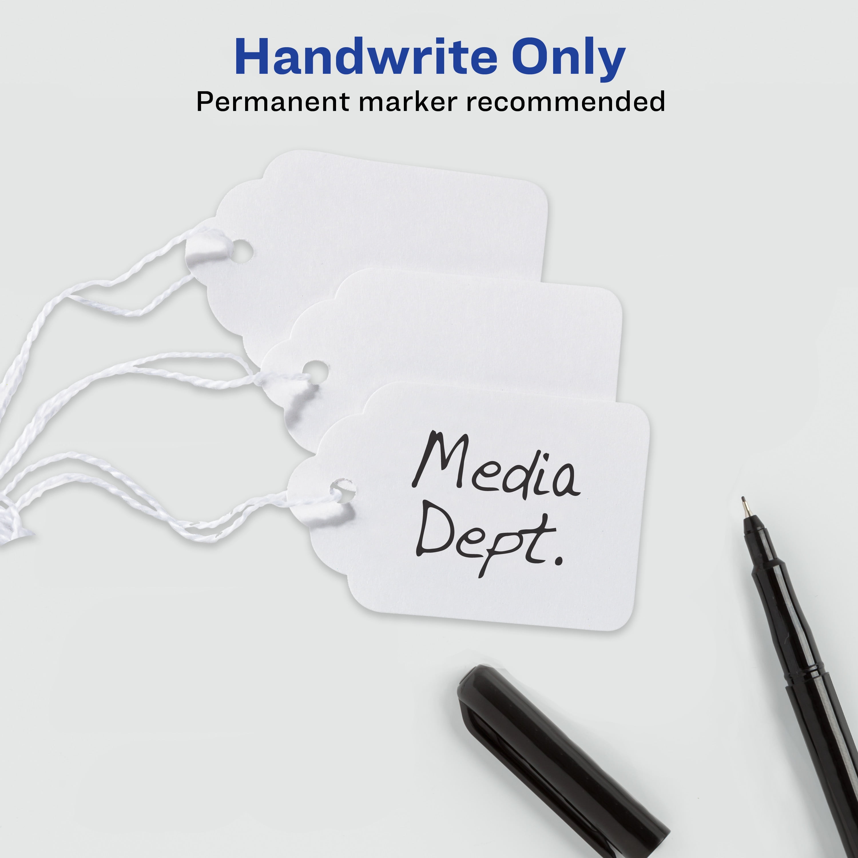 - Handwrite directly on the smooth writing surface of the tags for quick and easy labeling