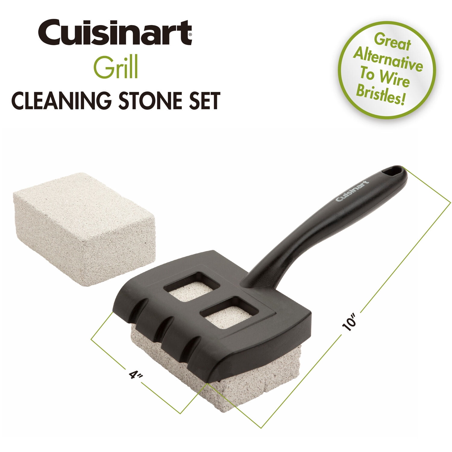 The Cuisinart Grill Cleaning Stone is the ideal cleaning tool for tough messes on your grill. The grill stone comes with a cleaning handle and a replacement cleaning stone. The cleaning handle firmly grips the stone and allows you to safely reach all areas of your grill while cleaning. The stone covers a wide area of your grill surface while cleaning. The gritty material of the stone easily breaks up burned-on food and grease with ease. As you use the stone, it will begin to form to your specific grilling surface, giving you a custom cleaning experience. The stones make for a safe alternative to traditional wire bristles brushes that can come loose and get stuck in your food.