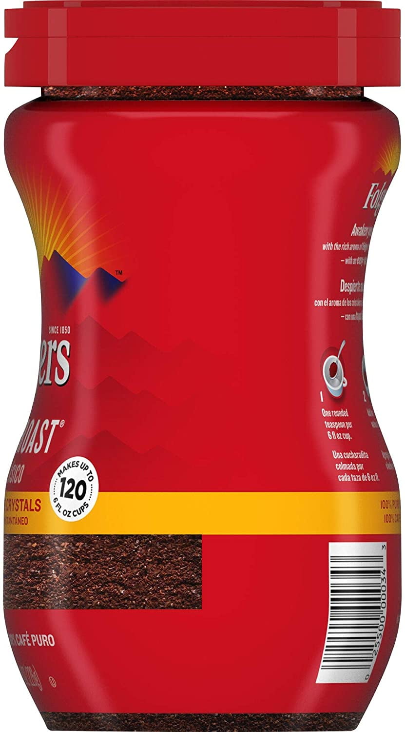 The classic Folgers taste you love is available in convenient coffee crystals for flavorful coffee in a hurry. With an easy-open flip-top jar, Folgers Classic Roast Instant Coffee Crystals is the fastest way to get the coffee you crave. Just add hot water or milk!
