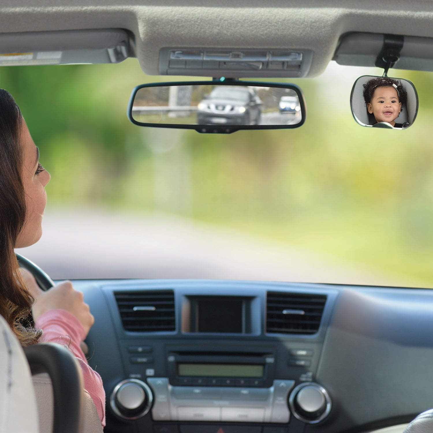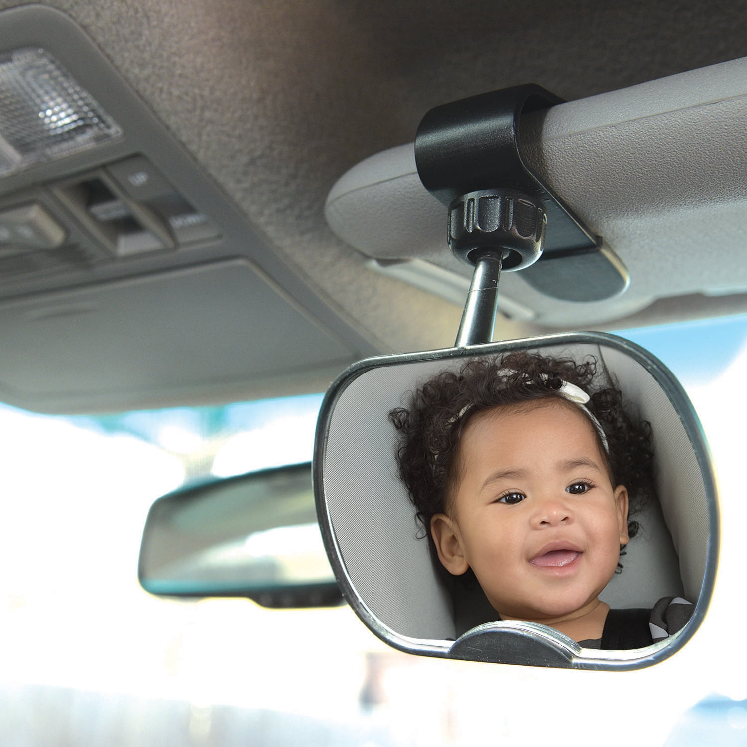 Our must have travel mirror gives you peace of mind while on the road. Its soft, lightweight and shatter-resistant with an adjustable strap and buckle system to help keep it securely in place and offer easy instilation and removal. Our deluxe 2-piece mirror set allows you to keep a watchful eye on baby while safely focusing on the road ahead. The larger, wide-angle mirror easily attaches to the backseat headrest, entertaining baby with their own reflection. The smaller, parent mirror clips to the visor, eliminating the need to continually adjust your vehicle’s rearview mirror. Great for rear facing babies and toddlers during the summer road trips and day trips.