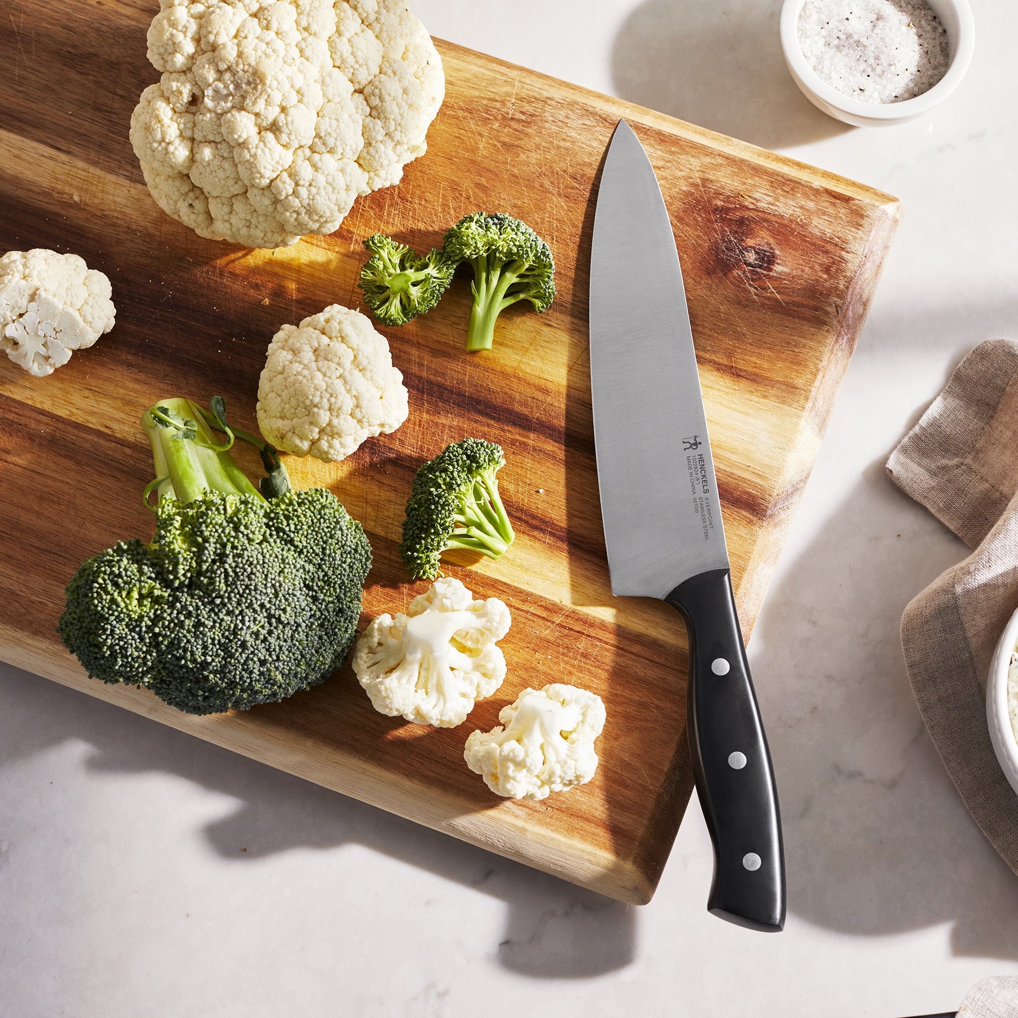 HENCKELS Everpoint knives are ultra-sharp for everyday meal prep. The knives start out razor-sharp and stay sharper longer, even with minimal care. Crafted from a single piece of high-quality stainless steel, you’ll enjoy easy meal prep and paper-thin cuts with these lightweight, easy-to-use knives. Stain and rust-resistant, Everpoint knives are dishwasher safe for fuss-free cleaning. Informed by over 100 years of masterful knife making, HENCKELS knives are built to last. The Everpoint 8-inch chef’s knife is a reliable, all-rounder knife, perfect for almost every kitchen task. Chop herbs, dice onions, and mince garlic with this workhorse blade in the kitchen.