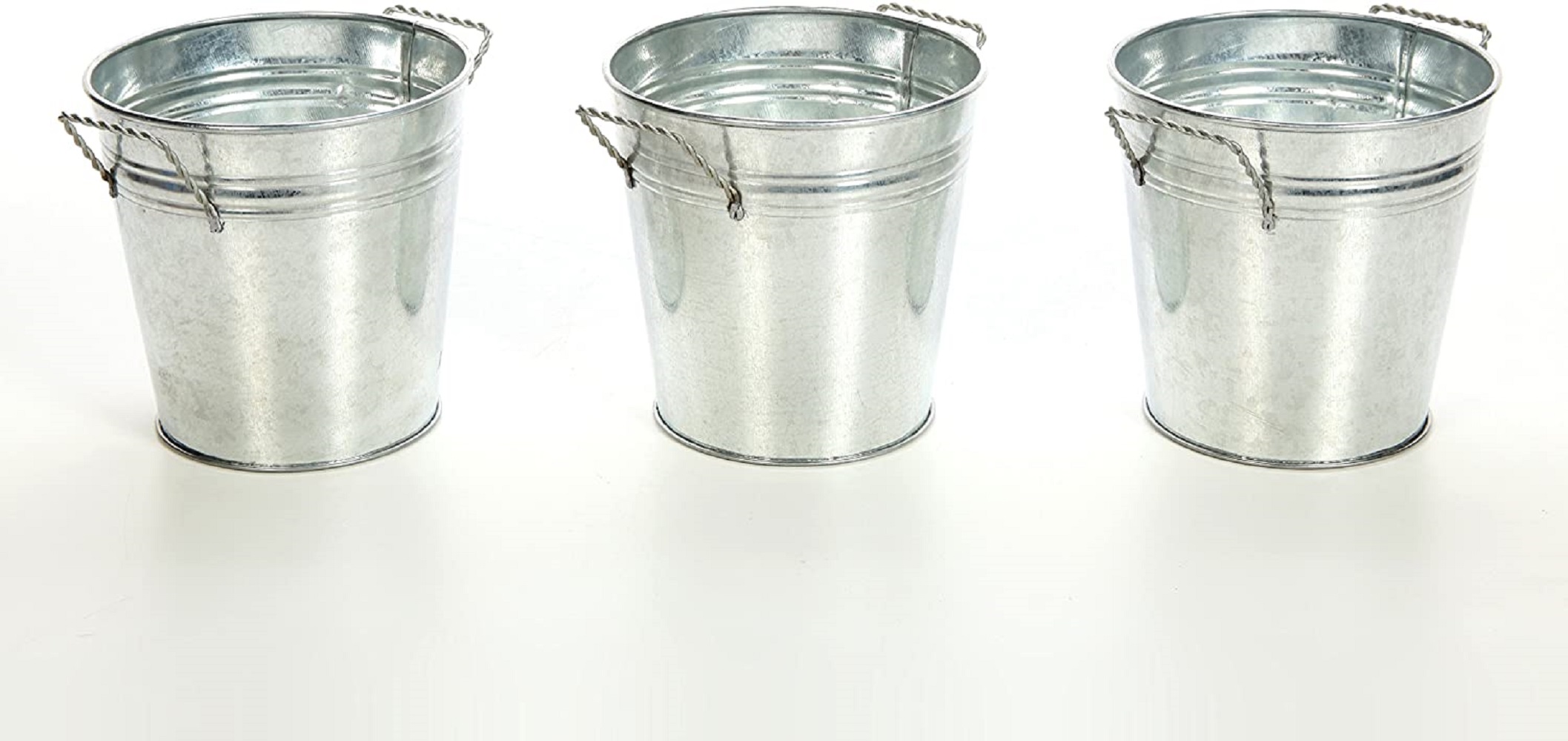 Hosley’s 3 pack of Galvanized Planters. Each planter measures 5" x 5" x 4.5". Showcase your plants and flowers with Hosley’s Planters. Our planters give the perfect complement to any decor. Just add your favorite dry floral or greenery arrangements to any of the planters to make your room shine. You can even place your favorite fresh flowers or plants inside (Water tight liner must be used for fresh flowers or plants). Give your room a one-of-a-kind, artistic feel. This planter will fit beautifully on a plant stand, side table, or next to a sunny window. Whether you place ferns, or colorful flowers, this planter will give your flowers a unique finish. Help add beauty to your home whether it be indoors out outdoors with Hosley’s planters. (Planters are not weather resistant). High. Hosley planters are for decorative use and are made for Artificial Flowers. You can add faux stems, greenery, bouquets, and flowers to add additional color to your decor. TIP: if you wish to add dried florals and/or to prevent pets knocking vase down, add some floral filler marbles or rocks to help weigh the base down. Must use protective liner if used with fresh flowers (Leakage may occur).