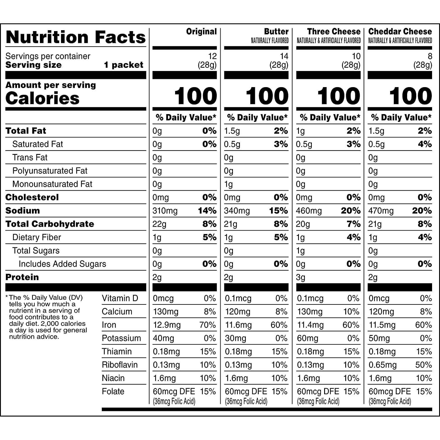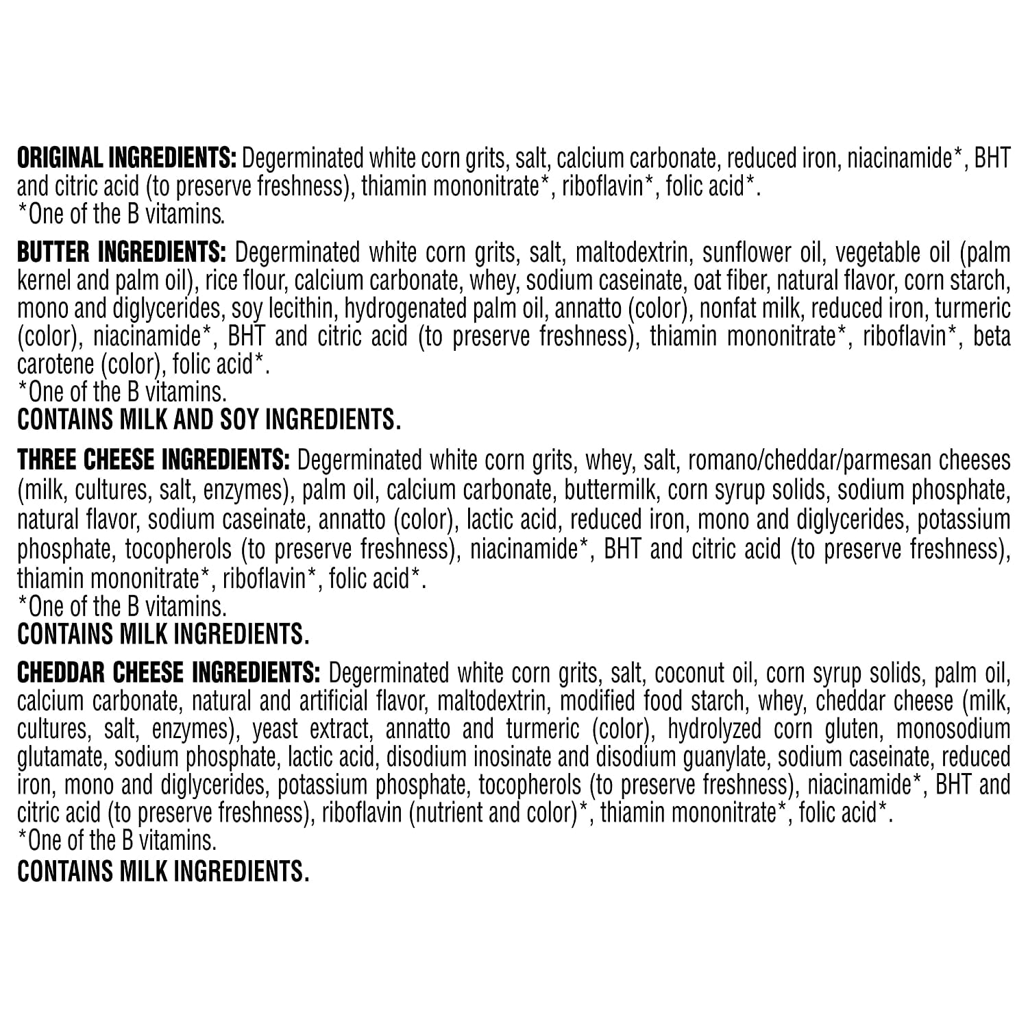 - Includes 44 individual packets of Quaker Instant Grits: (12) Original, (14) Butter, (10) Three Cheese, and (8) Cheddar Cheese