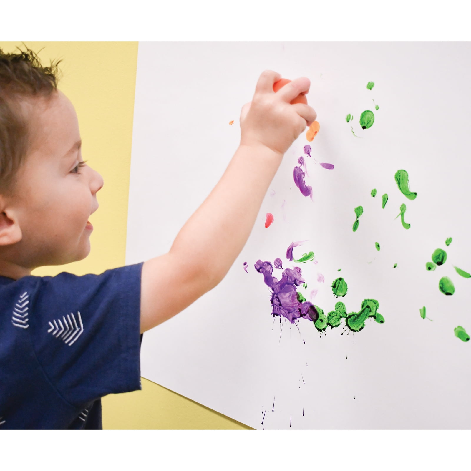 - 6 MARKERS IN DIFFERENT COLORS — This kid’s art set features 6 dot markers with different, fun ink colors. Kids can paint, create, dab and dot with red, orange, blue, green and purple