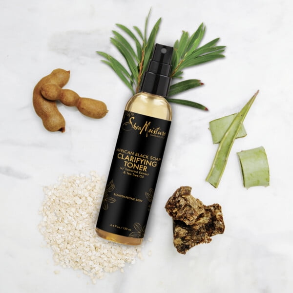 - SheaMoisture African Black Soap Clarifying Toner acts as a dual-action astringent that removes impurities that create an imbalance on the skin’s surface. Use as an acne toner or facial spray.