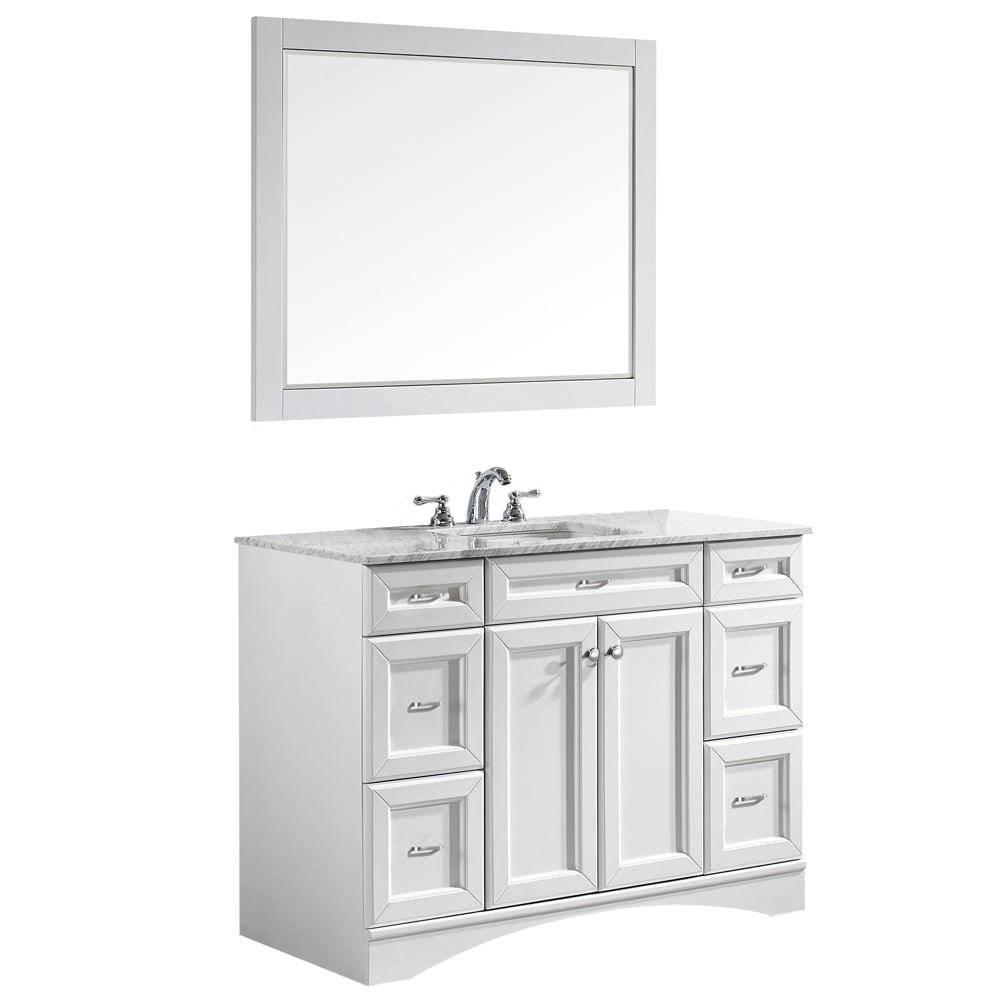Vinnova Naples 48′ Single Vanity in White with Carrara White Marble Countertop and Mirror