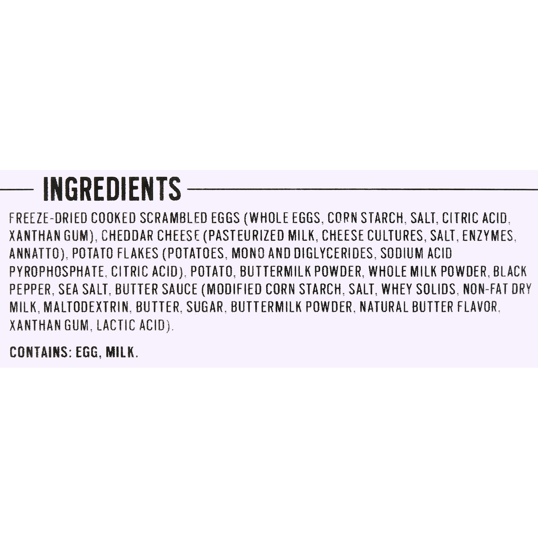 - Freeze-dried potato, buttermilk powder, whole milk powder, black pepper, salt, butter sauce powder (modified corn starch, salt, whey solids, non-fat dry milk, maltodextrin, butter, sugar, buttermilk powder, natural butter flavor, xanthan gum, lactic acid)