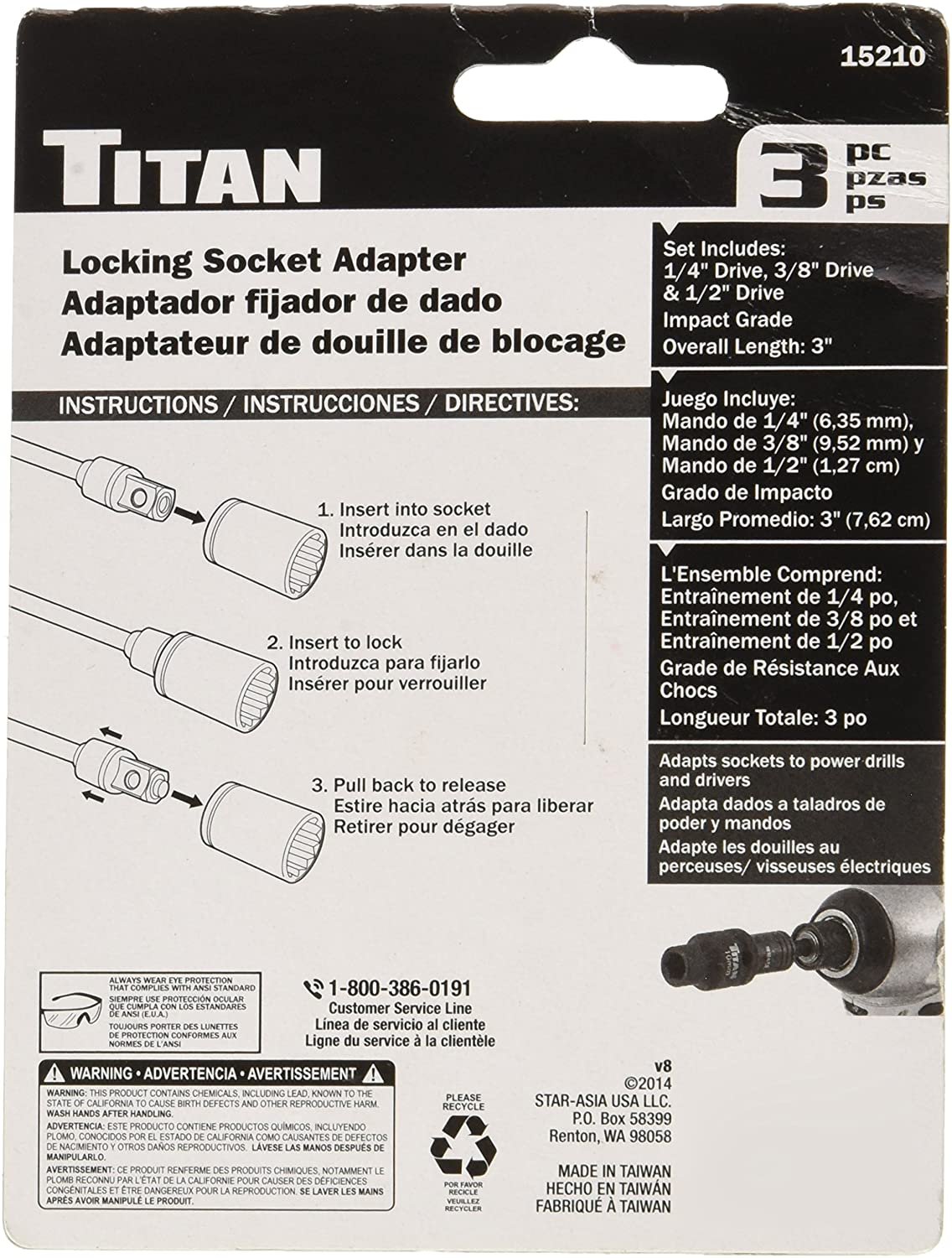 3 Piece 3′ Locking Socket Adaptor Set
