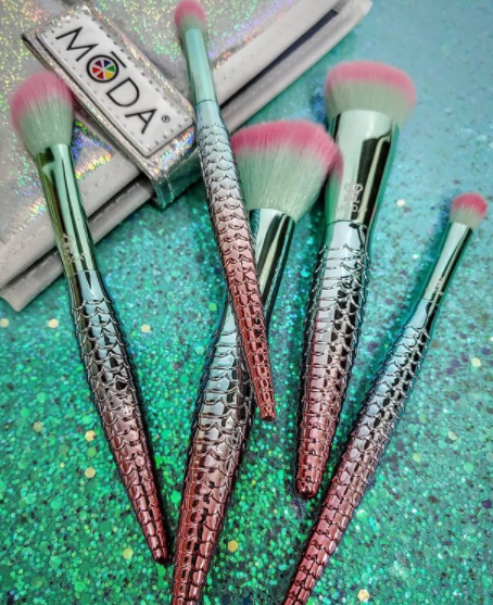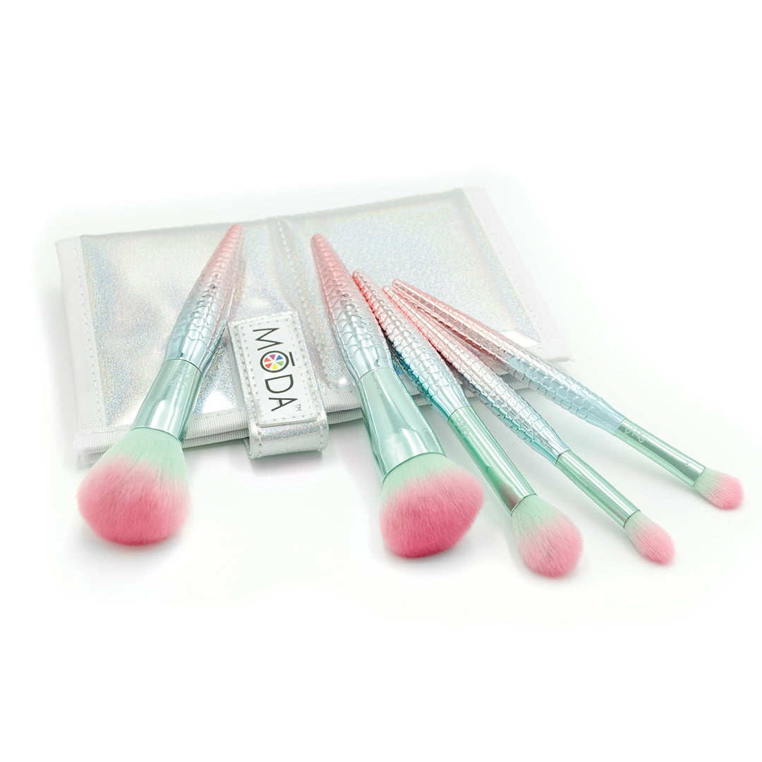 This MODA Mythical Splash Travel 6pc Flip Kit Makeup Brush Set is what your mermaid dreams are made of – functional brushes with a unique style! We’ve selected 5 travel sized brushes to complete endless looks and have included a holographic flip-kit case perfect for travel or at home on your vanity. This Set Includes – Powder, Complexion, Highlight and Glow, Crease, and Eye Shader Brushes.
