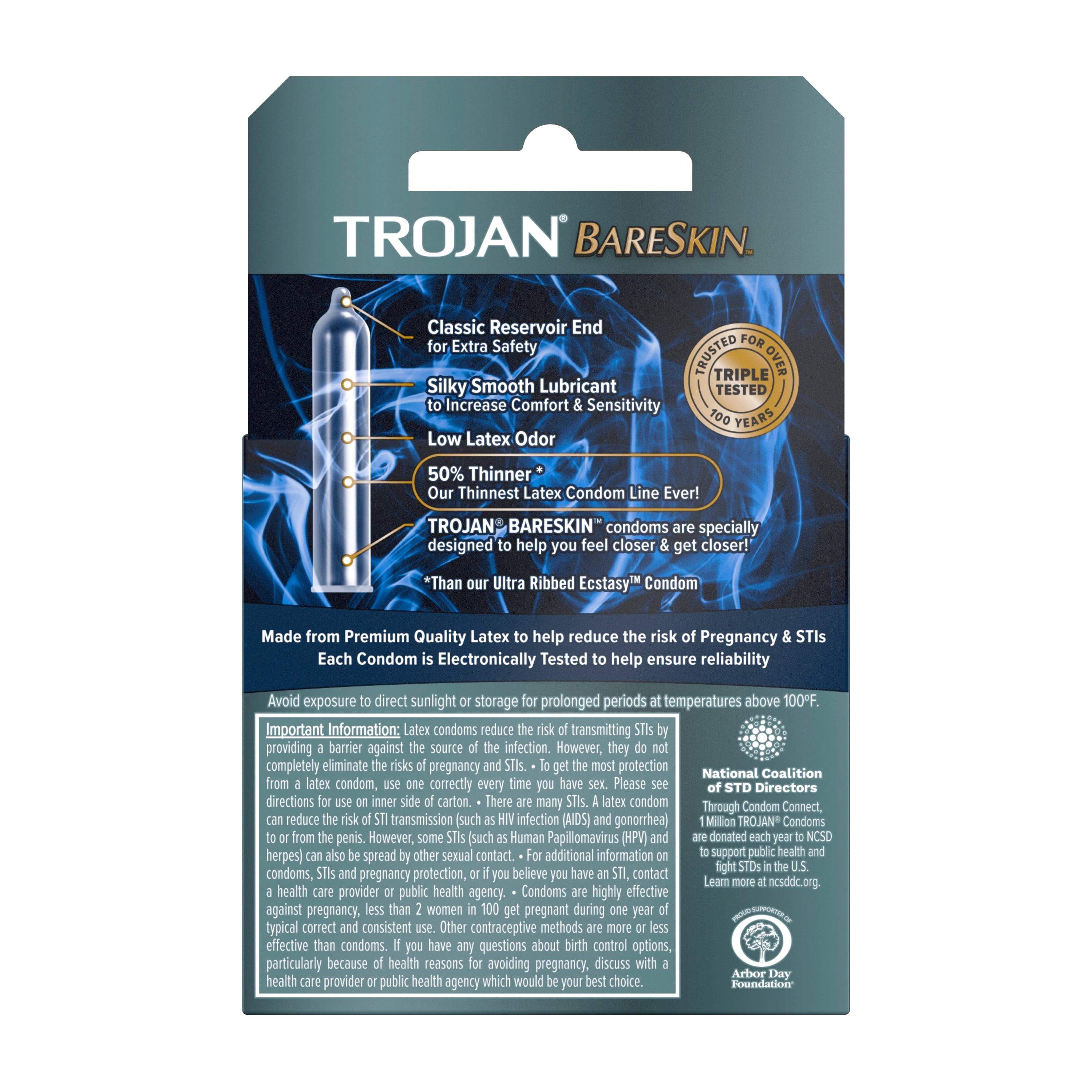Trojan Sensitivity Bareskin Lubricated, Latex Condoms, 3ct