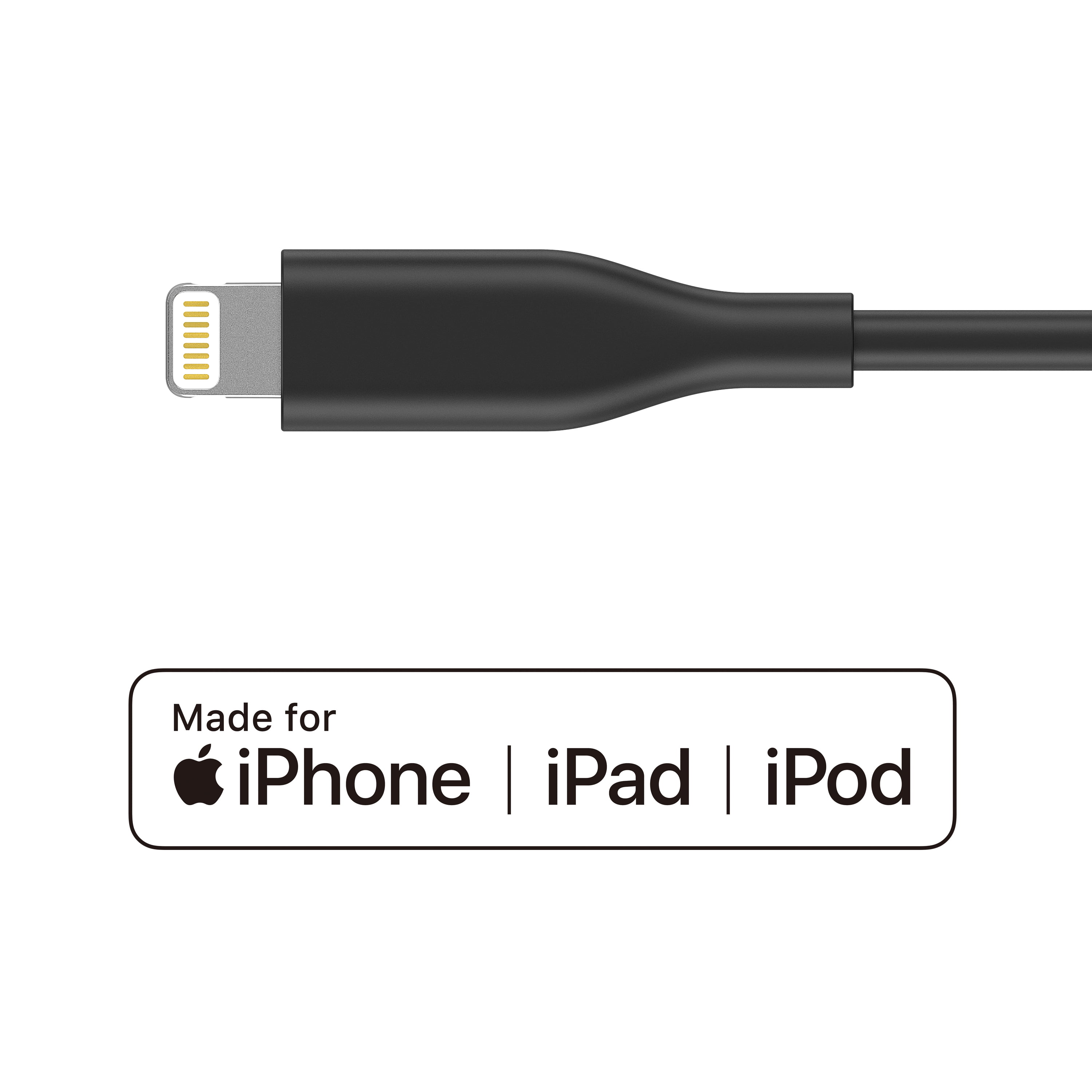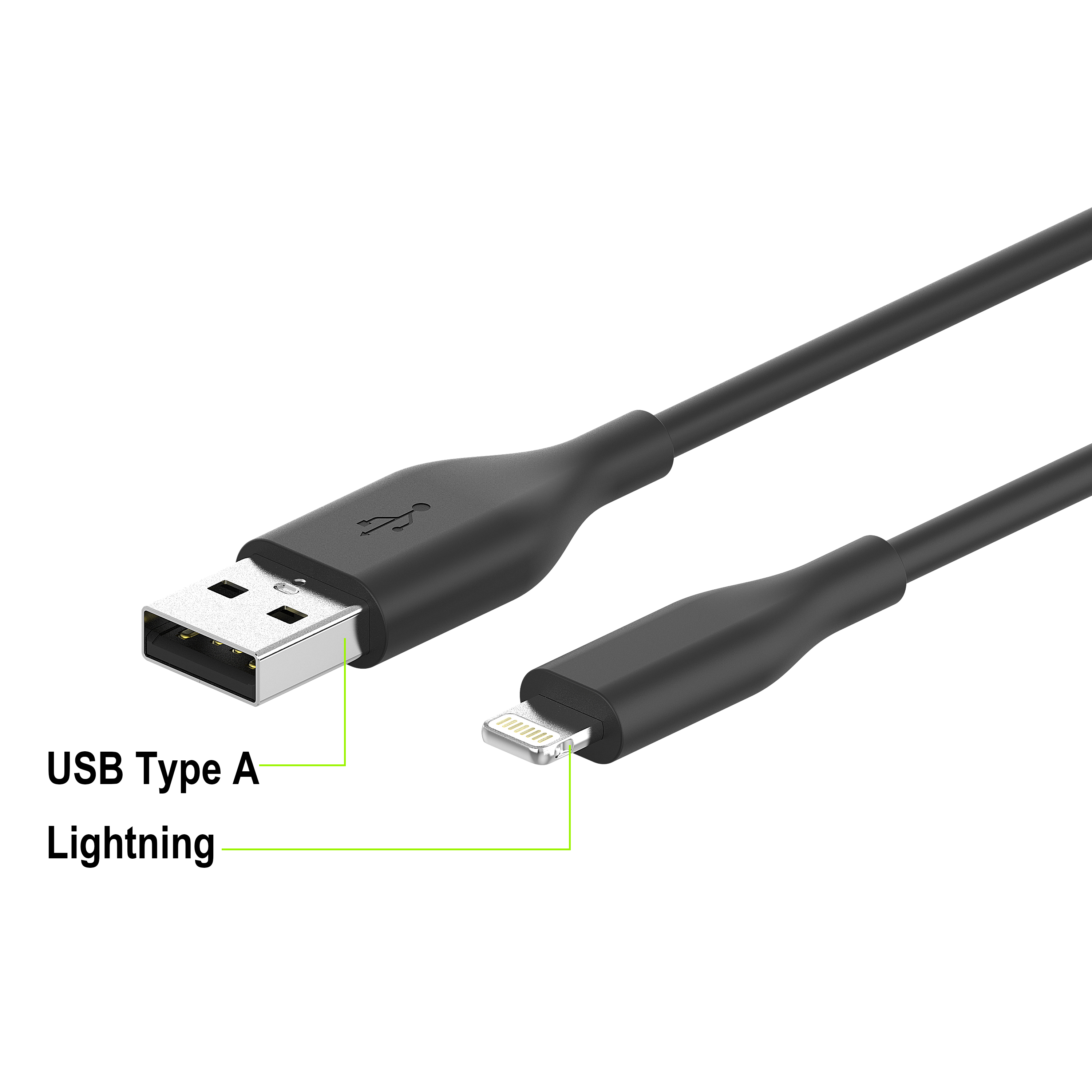 Auto Drive USB A To Lightning PVC Charging Cable 6Ft, Black● Classic black color.● Sufficient length:6Ft(1.8m)● Plugs into any USB-A port to sync data and charge.● MFi authorized: No error message "This accessory may not be supported" on your Apple device.● Connects to your iPhone, iPad, or iPod with Lightning Connector and charges/syncs by connecting the USB connector into your wall charger or computer.