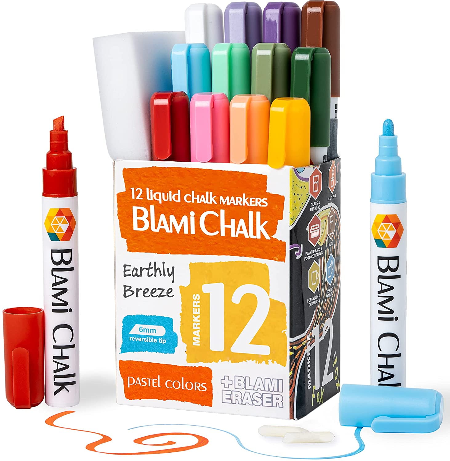 Blami 12 pack Earth Tone Ink Pens Chalk Markers for Window Marker for Cars – Reversible Tips and Erasing Sponge Included