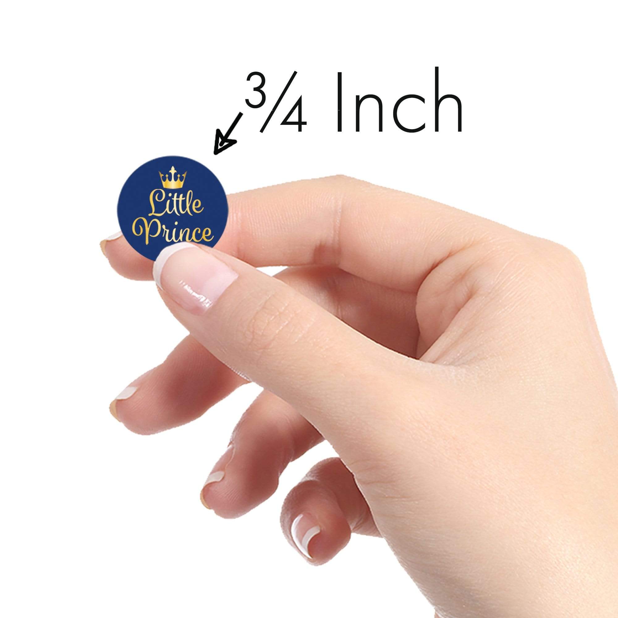 - 180 STICKERS – blue and gold royal Little Prince baby shower stickers to match prince baby shower decorations at your boy baby shower.